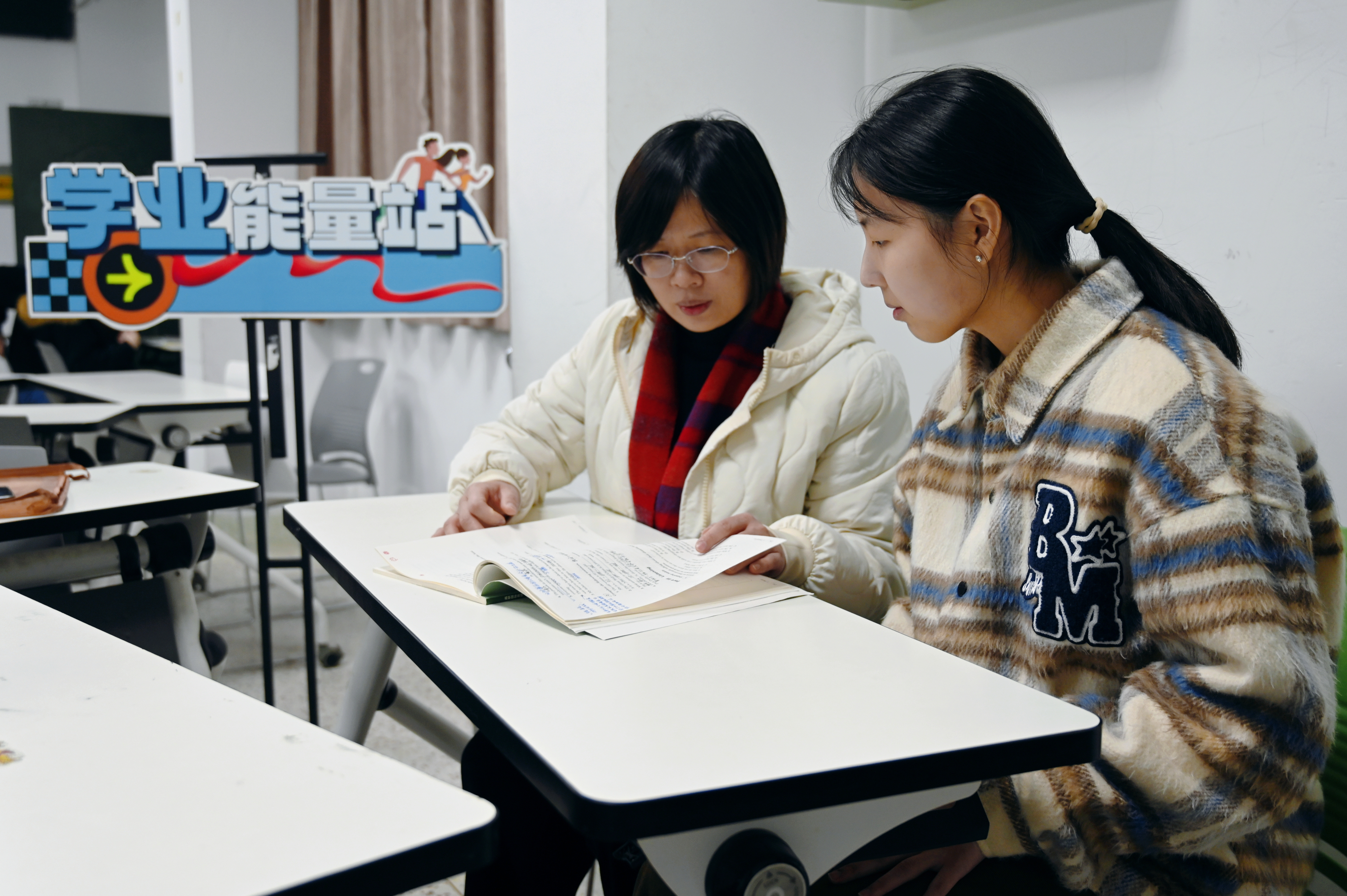 在學(xué)院全方位育人理念的引領(lǐng)下,“學(xué)業(yè)能量站”持續(xù)構(gòu)建師生共進(jìn)、教學(xué)相長(zhǎng)的優(yōu)質(zhì)平臺(tái)。教師們緊扣學(xué)生實(shí)際需求,通過(guò)“一對(duì)一”個(gè)性輔導(dǎo)、難點(diǎn)專(zhuān)題突破、復(fù)習(xí)策略交流等多種形式,強(qiáng)化學(xué)習(xí)思維與方法的引導(dǎo),幫助同學(xué)們逐步厘清脈絡(luò)、鞏固基礎(chǔ)——抽象的公式得以拆解,復(fù)雜的語(yǔ)法變得清晰,體系化的理解不斷深化。