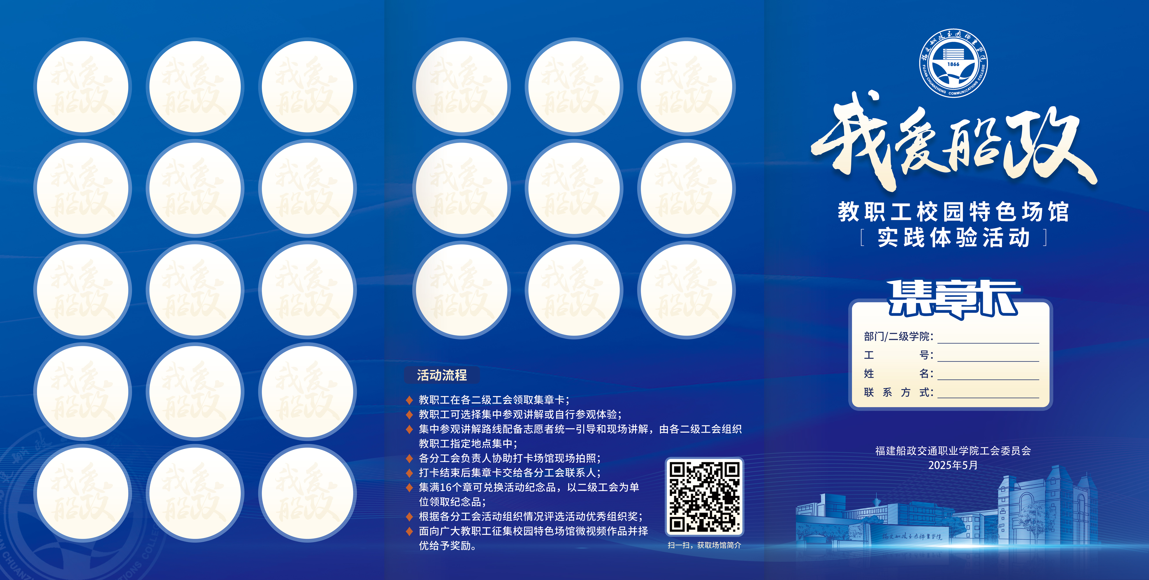 為團(tuán)結(jié)凝聚廣大教職工充分感受學(xué)院職教特色和辦學(xué)成果,激勵廣大教職員工愛校愛家、團(tuán)結(jié)奮斗、追求卓越,為學(xué)院高質(zhì)量發(fā)展做出新的更大貢獻(xiàn)。學(xué)院工會聯(lián)合各二級工會,共同開展“我愛船政”教職工校園特色場館實踐體驗活動,現(xiàn)將活動具體安排通知如下: