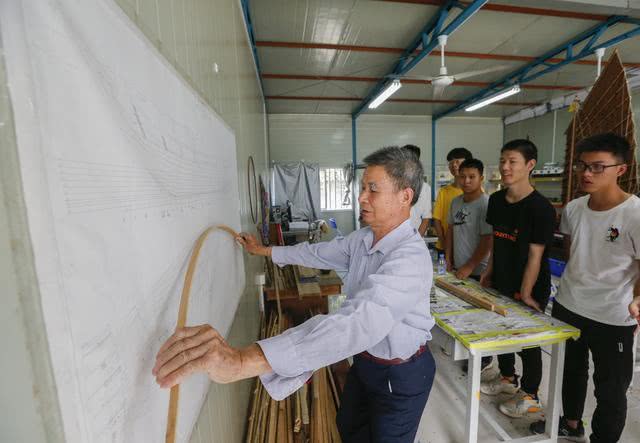 78歲的林瑞好師傅,現(xiàn)場傳授制船工藝