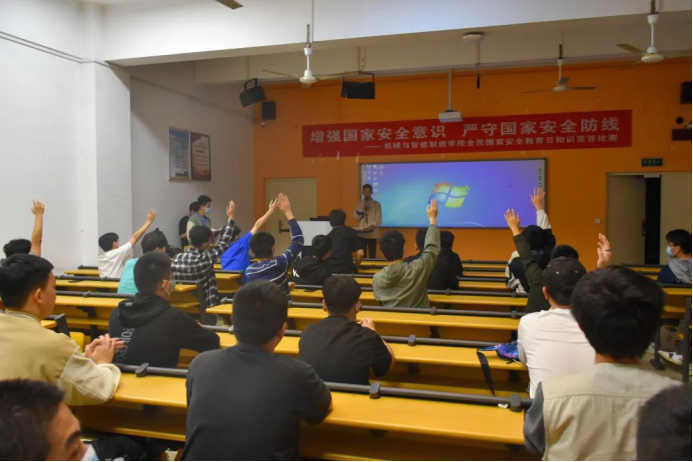 機(jī)械與智能制造學(xué)院于4月15日舉行“國(guó)家安全日知識(shí)競(jìng)答”活動(dòng),學(xué)生通過(guò)觀看視頻,在有限的時(shí)間內(nèi)記住視頻中所要傳達(dá)的關(guān)鍵點(diǎn)進(jìn)行競(jìng)答,活動(dòng)現(xiàn)場(chǎng)氣氛熱烈,收效良好。