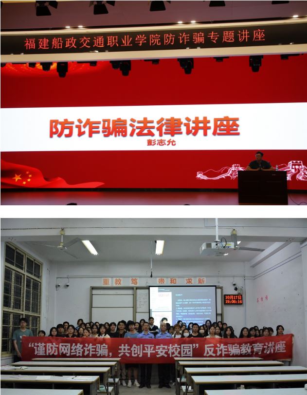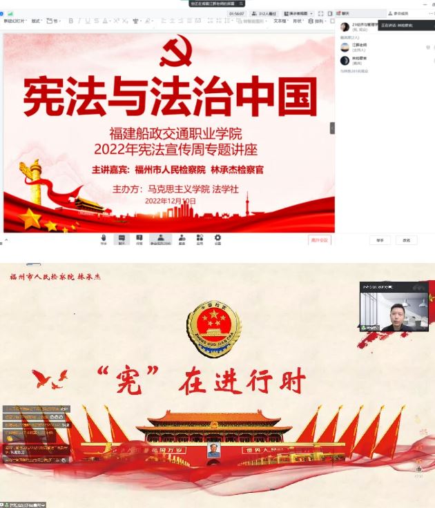 發(fā)揮課堂主渠道作用。福建船政交通職業(yè)學(xué)院重新匯編《福建船政交通職業(yè)學(xué)院法律讀本》,開設(shè)《大學(xué)生法律基礎(chǔ)知識(shí)》等法學(xué)類通識(shí)課程,結(jié)合社會(huì)熱點(diǎn)邀請(qǐng)司法機(jī)關(guān)工作人員線上開展“憲法與法治中國”在憲法宣周專題講座,線下開展“以案說法”宣傳法治教育、“謹(jǐn)防網(wǎng)絡(luò)詐騙,共創(chuàng)平安校園”防詐騙教育講座、“以檢之名 護(hù)航青春”——普法講座、福建船政交通職業(yè)學(xué)院民族宗教政策法規(guī)專題講座、“良法善治 同心同行”憲法宣傳活動(dòng)等系列豐富多彩的專題活動(dòng),每周三定期開展線上線下公益法律咨詢解答活動(dòng)及“繃緊法律弦,走好人生路”遠(yuǎn)離走私犯罪小課堂。