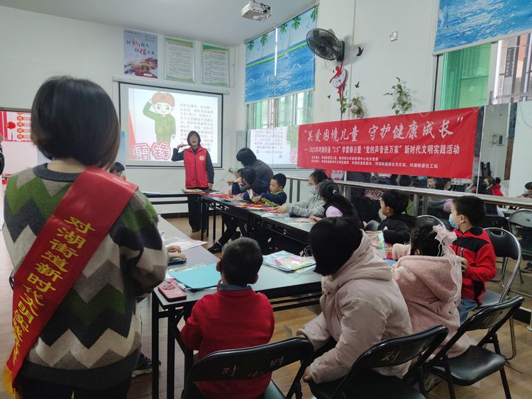對(duì)湖街道聯(lián)合福州海關(guān)后勤管理中心在街道新時(shí)代文明實(shí)踐所開展“關(guān)愛困境兒童 守護(hù)健康成長” --“3.5”學(xué)雷鋒日暨“黨的聲音進(jìn)萬家”新時(shí)代文明實(shí)踐活動(dòng)。活動(dòng)采用手指操、剪紙、貼畫的藝術(shù)形式為孩子們帶來了一堂以“雷鋒精神”為主題的公益課堂。