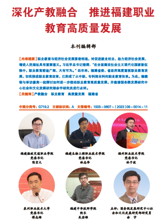 福建省人民政府發(fā)展研究中心主辦的《發(fā)展研究》2023年第8期“深學(xué)爭優(yōu)、敢為爭先、實干爭效”專欄,刊發(fā)了對學(xué)院黨委書記陳宜大的書面采訪,內(nèi)容如下: