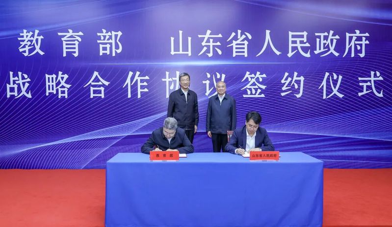 懷進(jìn)鵬表示,山東全面貫徹黨的二十大精神,認(rèn)真落實習(xí)近平總書記重要指示要求,錨定“走在前、開新局”目標(biāo),堅持把教育擺在優(yōu)先發(fā)展的戰(zhàn)略位置,深刻理解教育、科技、人才共同支撐推進(jìn)中國式現(xiàn)代化的重要意義,不斷推動教育在改革中加強、在創(chuàng)新中發(fā)展,各級各類教育發(fā)展水平邁上新的臺階。教育部愿與山東以落實部省戰(zhàn)略合作協(xié)議為契機,同題共答、同向同行,在推進(jìn)現(xiàn)代職業(yè)教育體系建設(shè)改革中打造山東“亮麗名片”,在深化高等教育綜合改革中支持山東先行先試,推動產(chǎn)教深度融合,強化校企深度合作,支持社會政策深度轉(zhuǎn)型,大力培養(yǎng)與產(chǎn)業(yè)緊密對接的高水平技術(shù)人才和行業(yè)緊缺人才,全面提高人才自主培養(yǎng)質(zhì)量,充分發(fā)揮教育服務(wù)國家戰(zhàn)略和支撐區(qū)域經(jīng)濟(jì)社會發(fā)展的重要作用,使山東教育成為改革發(fā)展和對外合作的先鋒和示范。