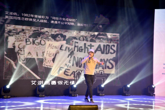 當(dāng)日在福建船政交通職業(yè)學(xué)院的室內(nèi)體育館“防艾”主會(huì)場內(nèi),有來自福州市福州語歌曲協(xié)會(huì)的“防艾藝術(shù)團(tuán)”向大家展示了近年改編的意義深刻的系列“防艾”精品節(jié)目,更有倉山疾控及東升街道社區(qū)衛(wèi)生服務(wù)中心的12位年輕醫(yī)護(hù)人員別具一格的唱跳節(jié)目《我不艾》。