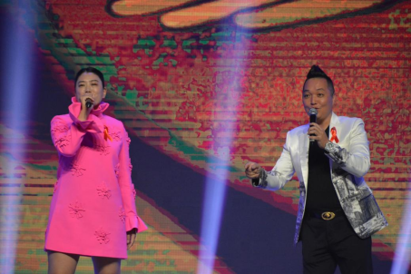 東南歌王許振旗,與嘉賓代表一起演唱“防艾”歌曲《防艾宣傳大家唱》,把現(xiàn)場氣氛推向高潮。