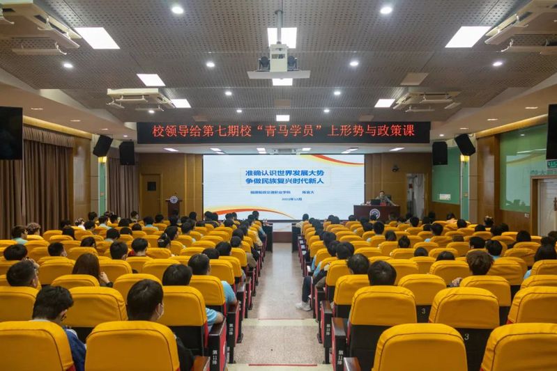 12月14日晚,我院黨委書(shū)記陳宜大在福道園行政樓學(xué)術(shù)報(bào)告廳為我院第七期“青馬學(xué)員”講授《準(zhǔn)確認(rèn)識(shí)世界發(fā)展大勢(shì),爭(zhēng)做民族復(fù)興時(shí)代新人》的專(zhuān)題形勢(shì)與政策課。組織部、宣傳統(tǒng)戰(zhàn)部、學(xué)生工作部、團(tuán)委、馬克思主義學(xué)院等我院團(tuán)員和青年主題教育副組長(zhǎng)單位負(fù)責(zé)人、各二級(jí)學(xué)院分團(tuán)委負(fù)責(zé)人、馬克思主義學(xué)院教師、青馬班學(xué)員參加講座。講座由院團(tuán)委書(shū)記陳慧主持。