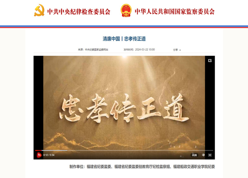 3月22日,中央紀(jì)委國(guó)家監(jiān)委網(wǎng)站“清廉中國(guó)”欄目,刊播嚴(yán)復(fù)家風(fēng)家訓(xùn)微視頻《忠孝傳正道》。