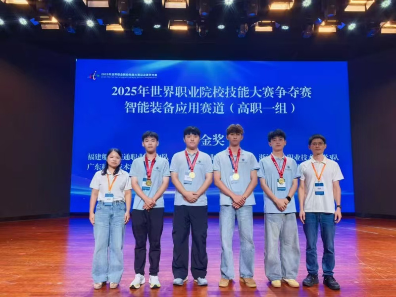 8月20日至26日,2025年世界職業(yè)院校技能大賽總決賽爭(zhēng)奪賽智能裝備應(yīng)用賽道(高職組)在浙江圓滿落幕。本次智能裝備應(yīng)用賽道匯聚全國 205 支隊(duì)伍同臺(tái)競(jìng)技,共同展開專業(yè)技能的精英對(duì)決。由我院曾思通、童曉薇、胡恒、林俊杰等教師團(tuán)隊(duì)指導(dǎo),陳世衛(wèi)、陳育凱、林煒晨、鄧越四名學(xué)生組成的參賽團(tuán)隊(duì),憑借扎實(shí)的專業(yè)功底、默契的團(tuán)隊(duì)協(xié)作與穩(wěn)定的臨場(chǎng)發(fā)揮,成功斬獲該賽道金獎(jiǎng)。
