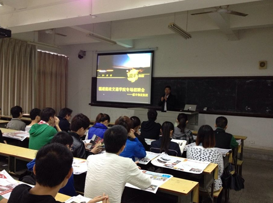 2014年4月23日在福建船政交通職業(yè)學(xué)院經(jīng)管大樓307教室為2014屆畢業(yè)生舉辦一場專場招聘會,由盛豐物流股份有限公司前來對交通經(jīng)濟系2014屆各專業(yè)應(yīng)屆畢業(yè)生進(jìn)行招聘。