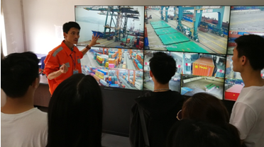 最后,同學們前往海盈碼頭的計劃科和中控室進行參觀,了解碼頭作業(yè)計劃方面的知識,同時,對中控室的功能進行學習,同學們對監(jiān)控系統(tǒng)表現(xiàn)出濃厚的興趣,王助理也詳細為同學們講解了監(jiān)控系統(tǒng)的功能及應用。