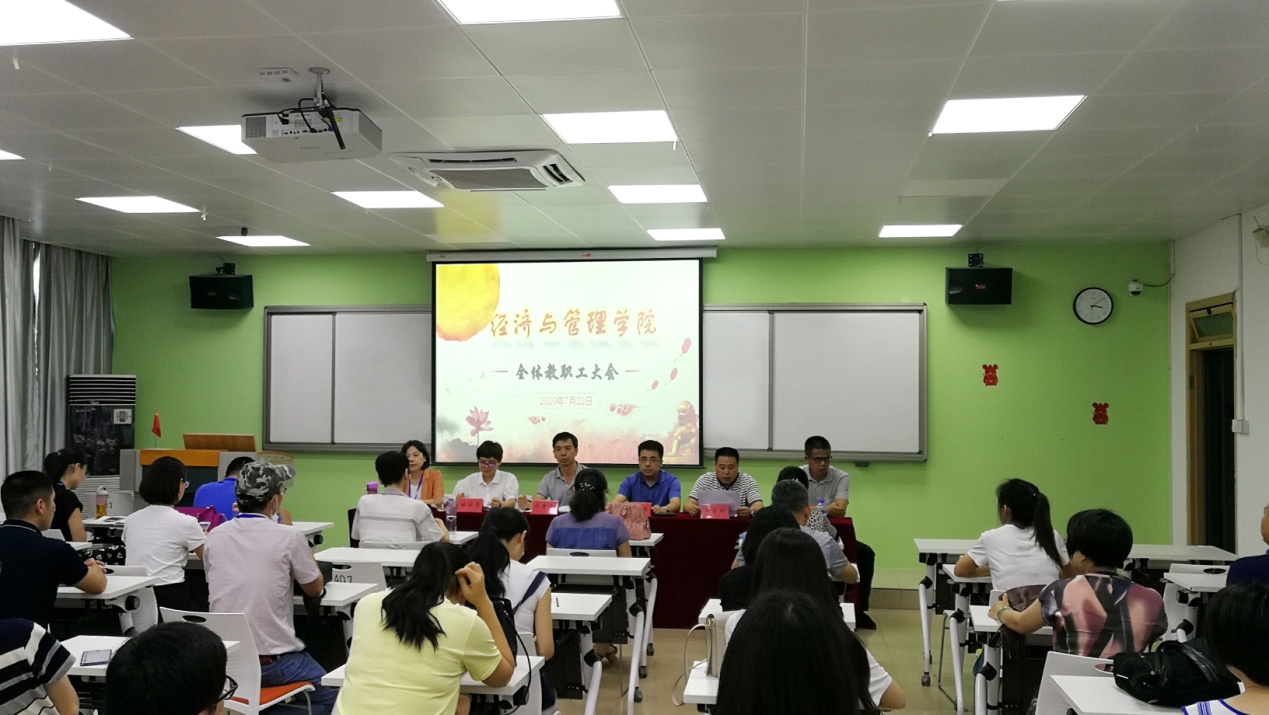 7月22日下午,新成立的經(jīng)濟與管理學(xué)院第一次全體教師大會在31#407舉行。經(jīng)濟與管理學(xué)院俞素平書記、房曰榮院長、林麗萍副書記、吳吉明副院長、林穎副院長、副處級組織員黃瑞秋及全體教職員工參加了會議。會議由經(jīng)濟與管理學(xué)院黨總支副書記林麗萍主持。