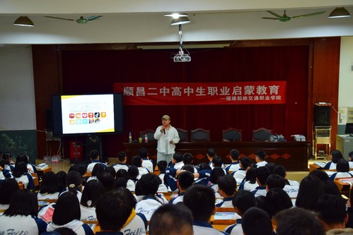 為深入貫徹落實《國家職業(yè)教育改革實施方案》,加強中小學(xué)生職業(yè)啟蒙教育,完成新時代賦予教育的歷史使命,充分發(fā)揮福建船政交通職業(yè)學(xué)院國家“雙高計劃”建設(shè)單位的優(yōu)勢、職業(yè)教育資源優(yōu)勢以及現(xiàn)代職教文化特色,11月2日,福建船政交通職業(yè)學(xué)院經(jīng)濟(jì)與管理學(xué)院副院長林穎、市場營銷教研室主任陳華、電子商務(wù)教研室主任陳樂天、市場營銷專業(yè)教師湯曉玲一行赴南平市順昌二中開展職業(yè)啟蒙教育活動,并為同學(xué)們帶來了豐富的宣傳物資及學(xué)院精美的文創(chuàng)禮品。