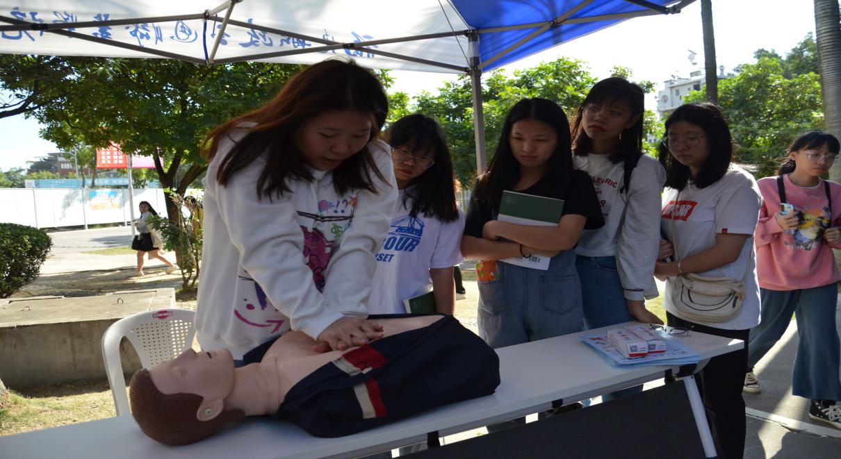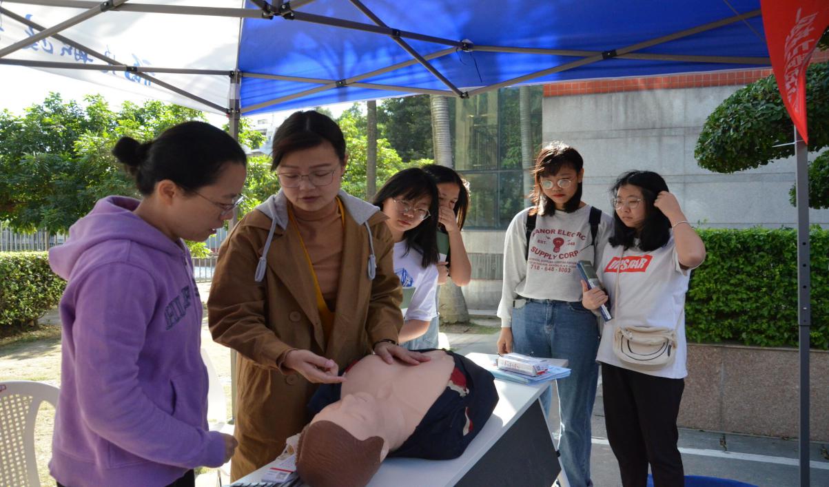 經(jīng)管學(xué)院嚴(yán)敏琳老師講解了心肺復(fù)蘇等安全知識(shí),并利用模擬人給大家作了心肺復(fù)蘇的現(xiàn)場(chǎng)示范,對(duì)日常生活中容易出現(xiàn)的突發(fā)意外急救措施與學(xué)員積極互動(dòng)。