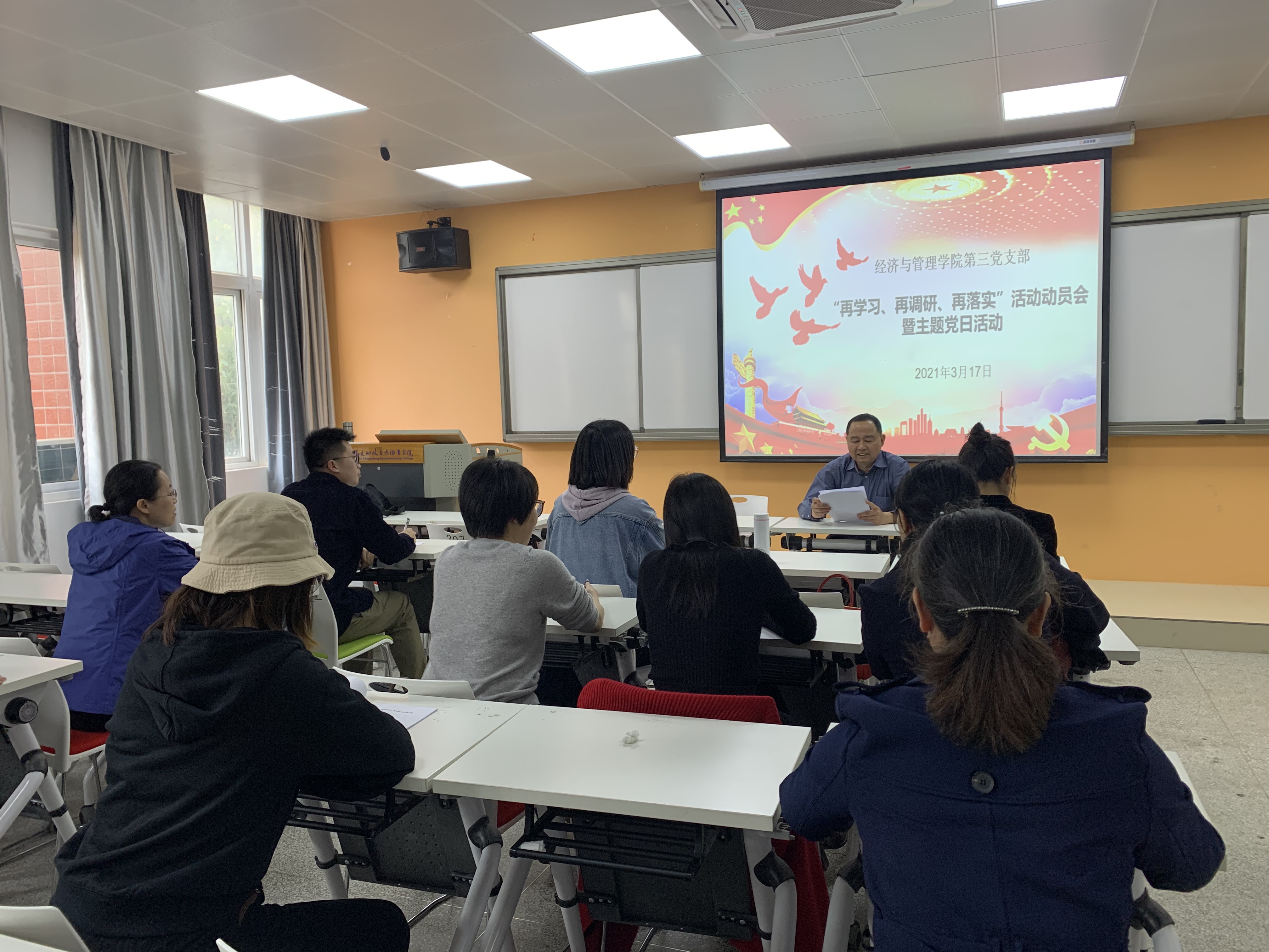 為深入推進(jìn)黨史學(xué)習(xí)教育及“再學(xué)習(xí)、再調(diào)研、再落實(shí)”學(xué)習(xí)活動(dòng)落到實(shí)處,2021年3月17日,經(jīng)濟(jì)與管理學(xué)院各支部在黨總支的統(tǒng)一部署下,通過線上線下聯(lián)學(xué)、主題黨日等方式,學(xué)習(xí)習(xí)近平在看望全國(guó)政協(xié)十三屆四次會(huì)議醫(yī)藥衛(wèi)生界、教育界委員并參加聯(lián)組會(huì)議時(shí)的講話精神及2021年全省教育工作會(huì)議精神。