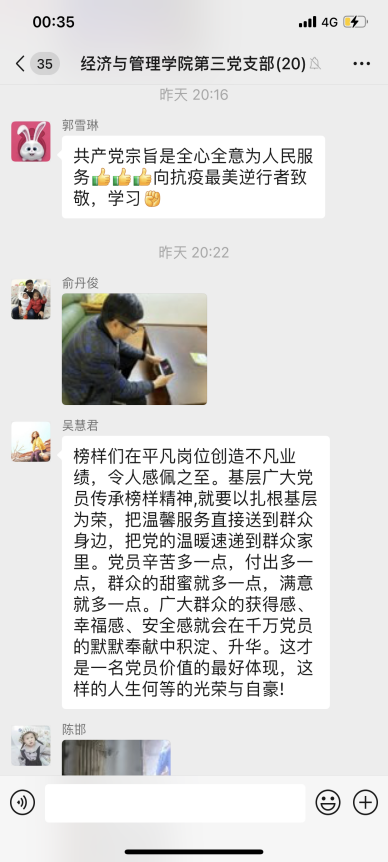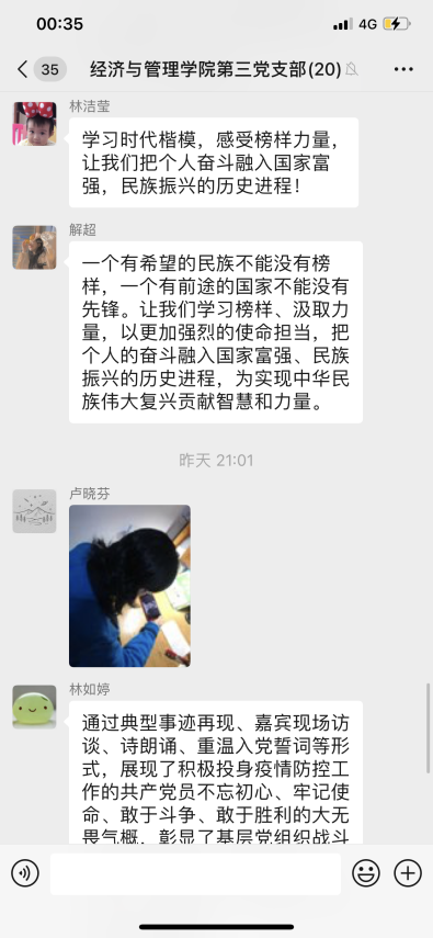 觀看過程中,黨員同志們在黨員微信群內(nèi)積極發(fā)言,交流觀看心得。