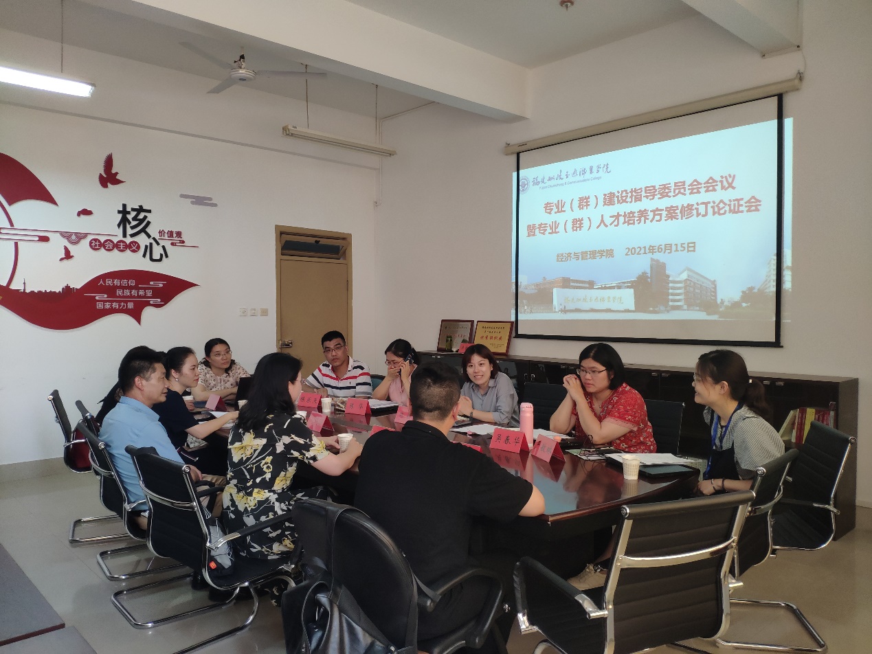 經(jīng)濟(jì)與管理學(xué)院于2021年6月15日下午,在南區(qū)31#經(jīng)管學(xué)院會(huì)議室召開(kāi)專業(yè)(群)建設(shè)指導(dǎo)委員會(huì)會(huì)議暨專業(yè)(群)人才培養(yǎng)方案修訂論證會(huì)。會(huì)議邀請(qǐng)了福建省電子商務(wù)協(xié)會(huì)專家劉軼華教授、福州會(huì)計(jì)云教育咨詢有限公司財(cái)務(wù)總監(jiān)王芬、德邦物流股份有限公司人事部高級(jí)經(jīng)理蘇恒、福州沃克斯物流有限公司林莉莉總經(jīng)理、福州金拱門食品有限公司黃燕平經(jīng)理等行業(yè)企業(yè)的專家出席。經(jīng)管學(xué)院領(lǐng)導(dǎo)、教研室主任、專業(yè)帶頭人等參加了會(huì)議。