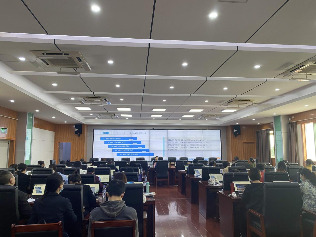 洪霞教授以“教學(xué)能力提升與實(shí)踐” 為題,結(jié)合自身多年的參賽及評(píng)審經(jīng)驗(yàn),從教師教學(xué)能力比賽的要求、教學(xué)團(tuán)隊(duì)及參賽作品的選擇及如何解決教學(xué)過程中利用信息化技術(shù)解決教學(xué)難點(diǎn)、痛點(diǎn)方面,分享了自己的寶貴經(jīng)驗(yàn),同時(shí)針對(duì)她自己獲獎(jiǎng)作品的選題、選人、選場(chǎng)景、教學(xué)設(shè)計(jì)四大要素逐一講解,傳授了教師教學(xué)能力比賽的經(jīng)驗(yàn)。