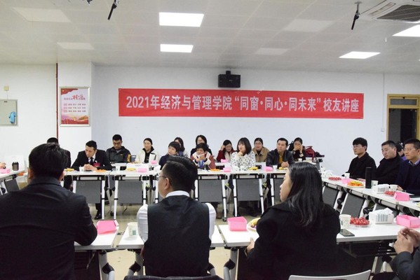 隨后,返校校友相聚一堂,暢所欲言。分別以在母校讀書學(xué)習(xí)生活為起點,述說了他們的人生歷程以及取得的成績,并各自表達了對母校的感恩之情:“今天找到組織了”、“學(xué)校給予我的不只是學(xué)業(yè)更多的是情感”。給在讀的同學(xué)們分享他們與經(jīng)管的故事以及他們畢業(yè)后的工作經(jīng)驗,并表達了他們對師弟師妹的殷切期待。大家一致認(rèn)為:通過校友會搭建的交流互動平臺,給大家構(gòu)建起了一個溫馨的“家”,團結(jié)友愛、互幫互助。