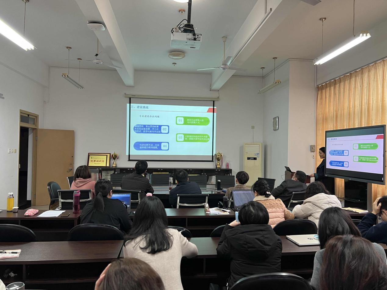 隨后,各教研室主任對(duì)專業(yè)建設(shè)基礎(chǔ)、建設(shè)目標(biāo)、建設(shè)挑戰(zhàn)、建設(shè)思路、建設(shè)特色亮點(diǎn)等進(jìn)行匯報(bào)。會(huì)上,各位參會(huì)老師認(rèn)真討論,踴躍發(fā)言,主要聚焦在“十四五”期間專業(yè)結(jié)構(gòu)調(diào)整、課程體系建設(shè)、師資隊(duì)伍建設(shè)、教材和課程資源開發(fā)、實(shí)驗(yàn)室建設(shè)、科研團(tuán)隊(duì)及平臺(tái)建設(shè)、產(chǎn)教融合、課證融通、社會(huì)服務(wù)等方面提出創(chuàng)新性的看法和建議,積極為學(xué)院專業(yè)建設(shè)建言獻(xiàn)策。學(xué)院領(lǐng)導(dǎo)班子也對(duì)如何加強(qiáng)專業(yè)建設(shè)、提升辦學(xué)層次以及人才引進(jìn)等方面提出了意見和建議。