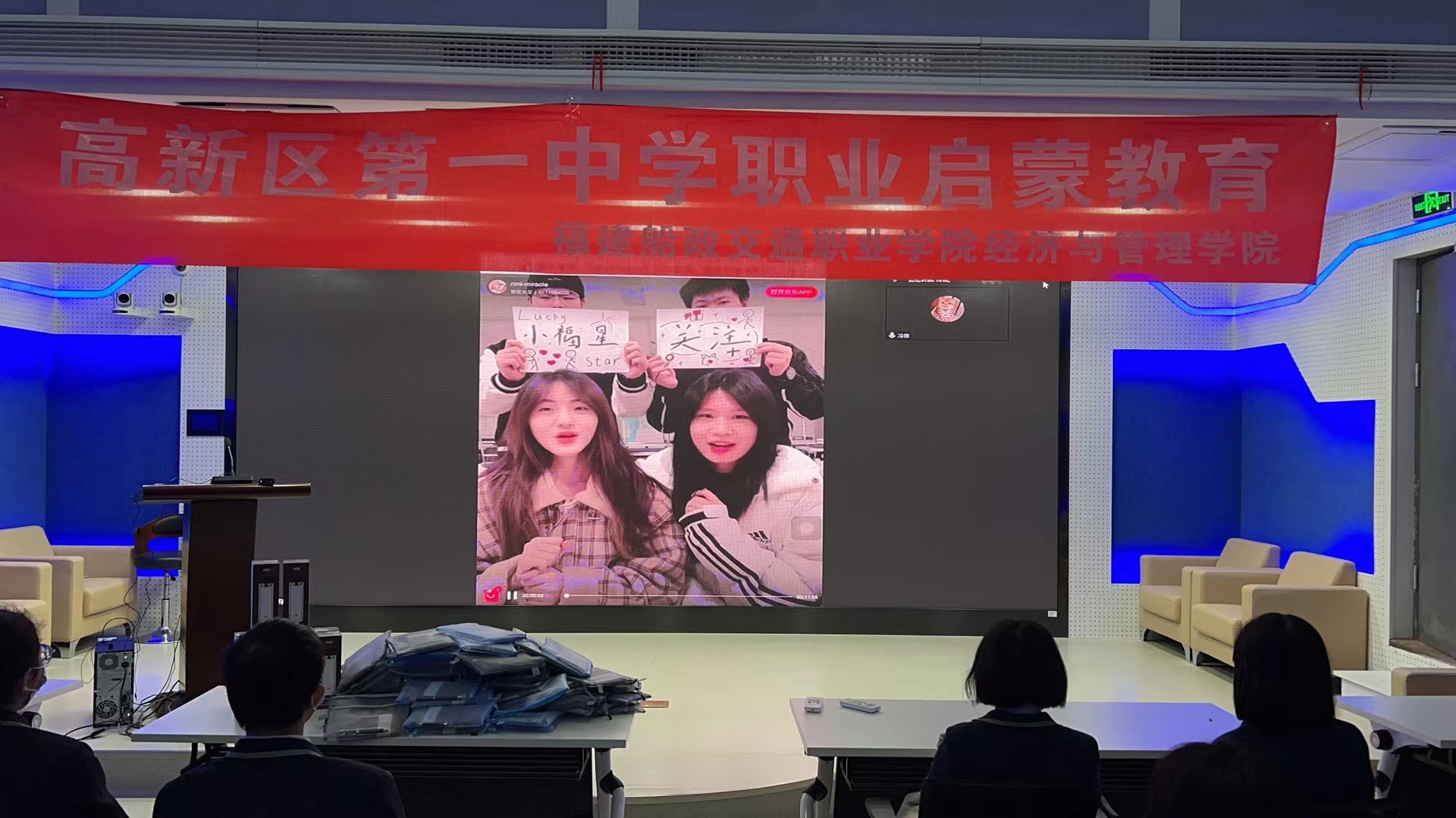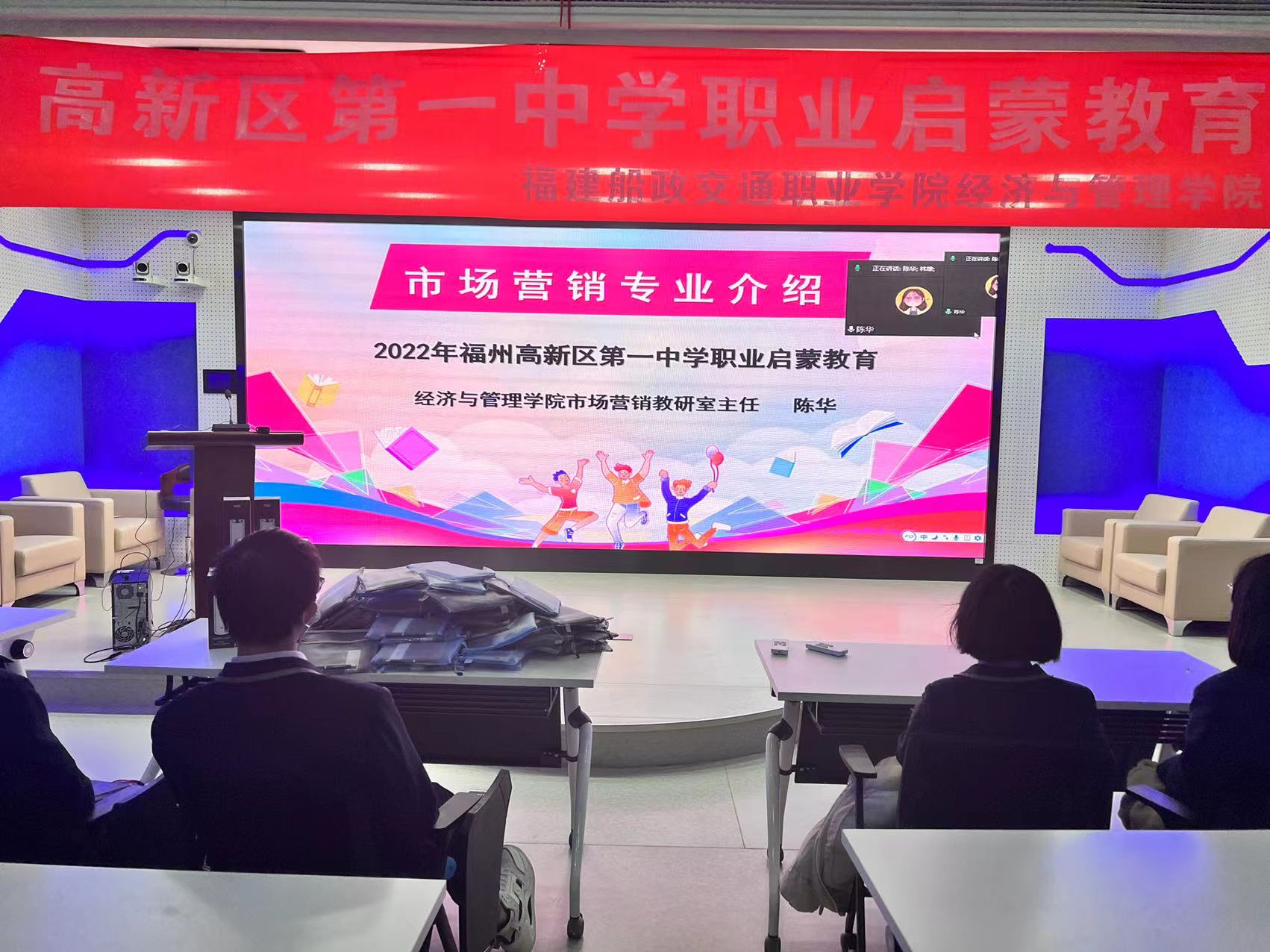 此外,市場(chǎng)營(yíng)銷專業(yè)學(xué)生也帶來(lái)了電商直播職業(yè)技能的展示。雖然是隔著屏幕,但現(xiàn)場(chǎng)的同學(xué)們興奮不已,在他們的心中埋下了職業(yè)與夢(mèng)想的種子。
