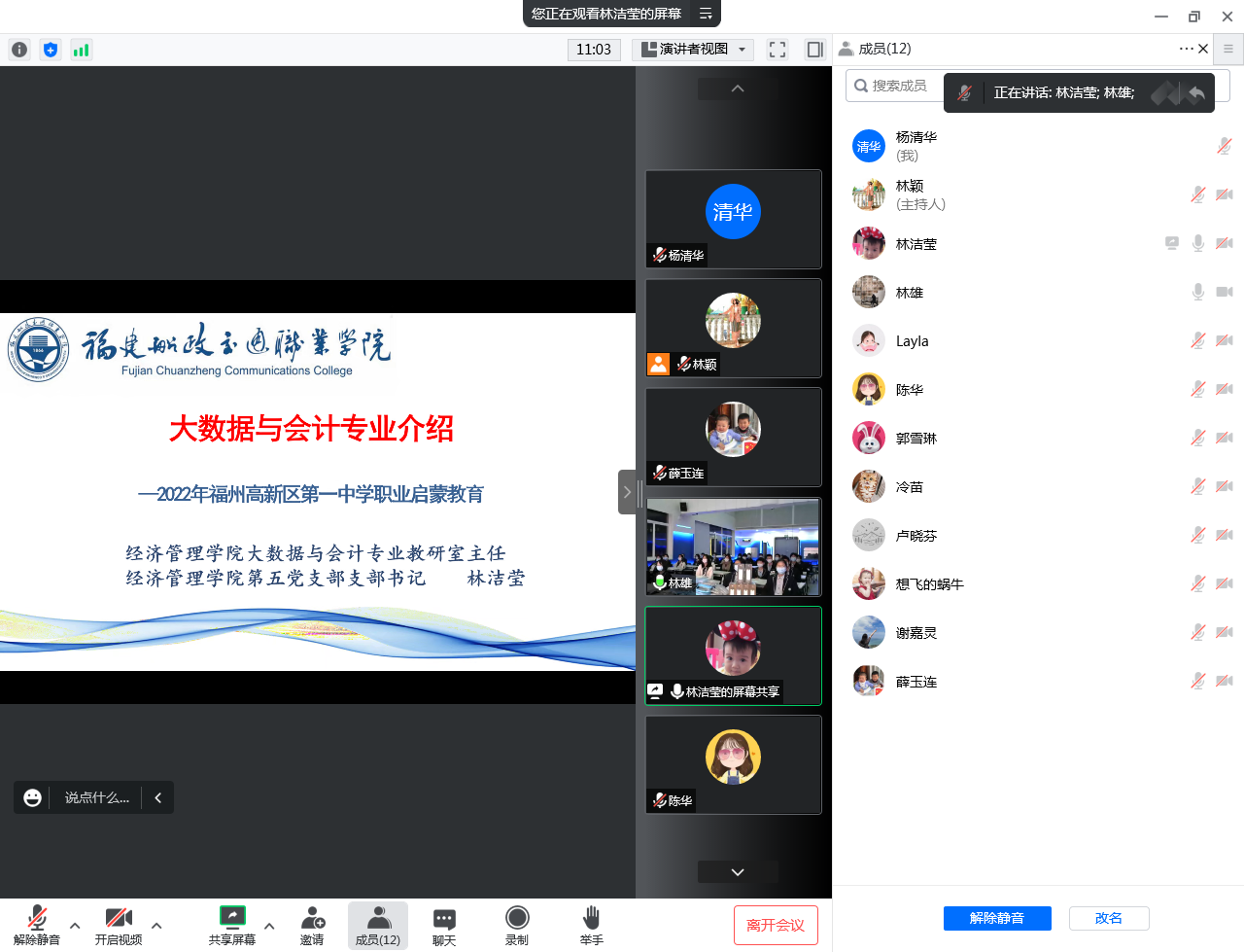 林潔瑩老師從專業(yè)的發(fā)展、專業(yè)的設(shè)置、行業(yè)企業(yè)的前沿以及職業(yè)崗位的發(fā)展前景等方面向同學(xué)們介紹了大數(shù)據(jù)與會(huì)計(jì)專業(yè),帶領(lǐng)同學(xué)們了解會(huì)計(jì)知識(shí)和技能是怎樣應(yīng)用于具體工作崗位的,從而更加明確當(dāng)前學(xué)業(yè)與未來(lái)職業(yè)的關(guān)系,體會(huì)到學(xué)習(xí)的意義和價(jià)值?!?/span>