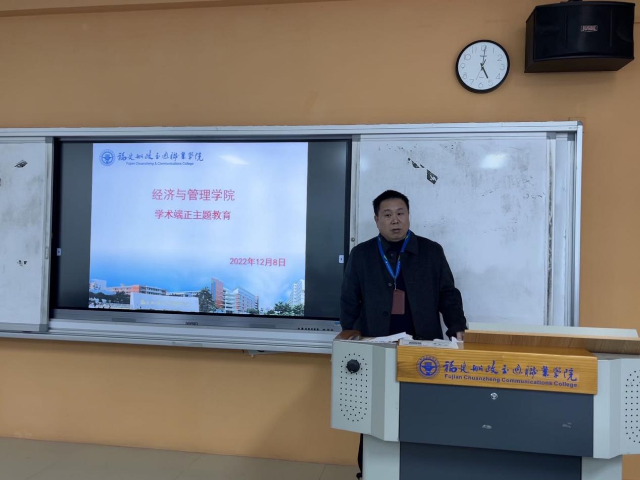 古語有云:“無規(guī)矩,不成方圓”。學術態(tài)度對于廣大教師具有重要的價值和作用。為加強經(jīng)濟與管理學院廣大教師學術態(tài)度,2022年12月8日上午9時,經(jīng)濟與管理學院吳吉明副院長在求實樓406教室為經(jīng)濟與管理學院教師開展了一場端正學術態(tài)度,遵守學術規(guī)范教育大會,經(jīng)濟與管理學院全體教師準時到場參加。