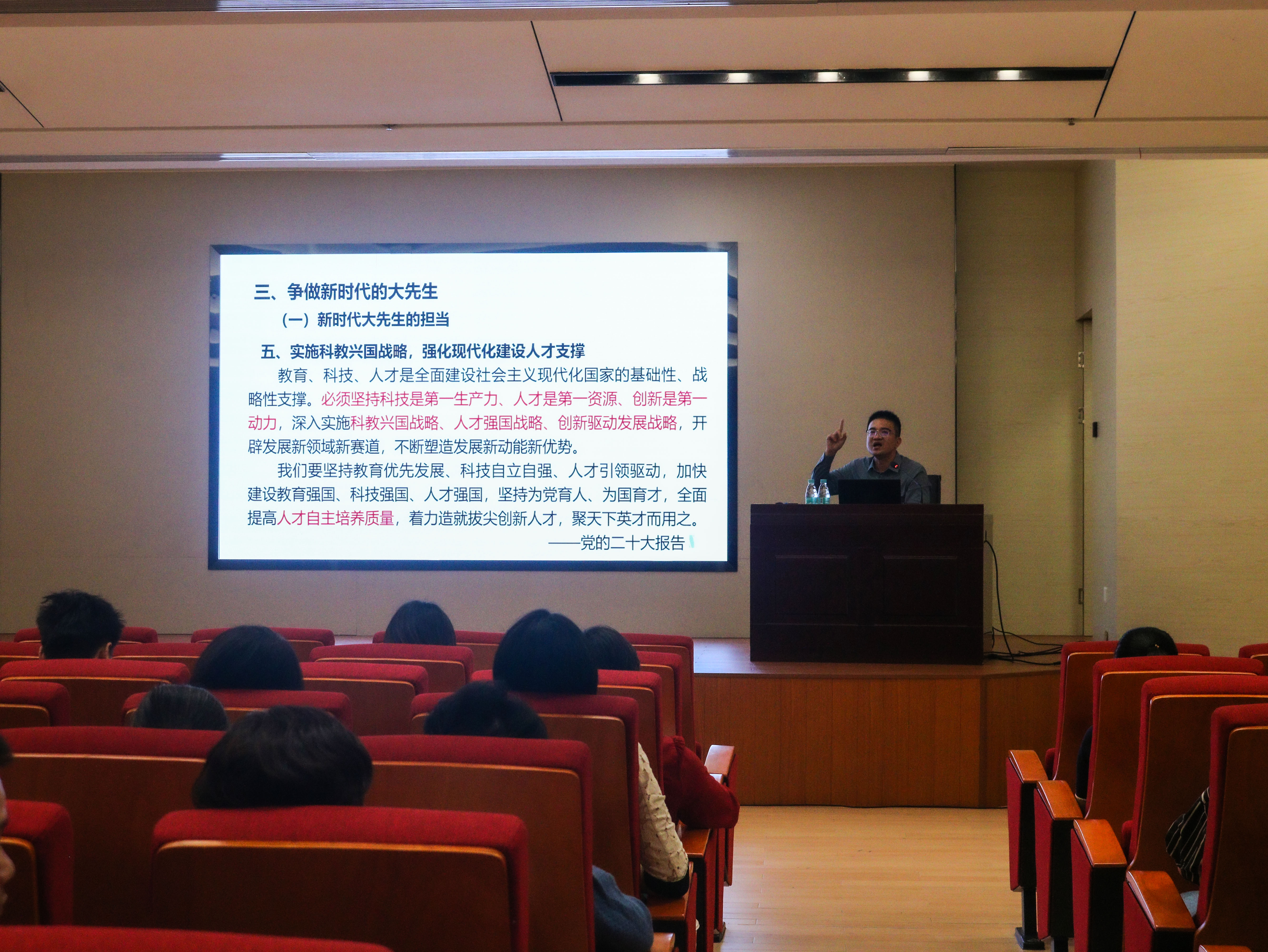 陳東老師以“爭做新時(shí)代‘四有’好老師、大先生”為主題,從“有了愛就有了一切”看師德師風(fēng)、樹立“四有”好老師標(biāo)準(zhǔn)、爭做新時(shí)代的大先生三個(gè)方面展開,帶領(lǐng)大家重溫黨的二十大報(bào)告中“教育、科技、人才是全面建設(shè)社會主義現(xiàn)代化國家的基礎(chǔ)性、戰(zhàn)略性支撐”“培養(yǎng)什么人、怎樣培養(yǎng)人、為誰培養(yǎng)人”是教育的根本問題,并且通過豐富的教育教學(xué)實(shí)踐經(jīng)驗(yàn)以及通俗易懂的語言,闡釋了師德的重要意義及達(dá)成“四有”好老師的成長途徑,他強(qiáng)調(diào)了教師應(yīng)該具備的品質(zhì)和行為準(zhǔn)則,如堅(jiān)持及時(shí)、精準(zhǔn)、到位原則,以仁愛之心關(guān)心學(xué)生、尊重學(xué)生發(fā)展規(guī)律等,進(jìn)一步激發(fā)大家要以德立身、以德立學(xué)、以德施教,堅(jiān)持為黨育人、為國育才的使命和擔(dān)當(dāng),不斷提高自己的教育水平和專業(yè)素養(yǎng),厚植學(xué)生的家國情懷。陳東教授春風(fēng)化雨、潤物無聲、風(fēng)趣睿智的講座,讓廣大教師更加堅(jiān)定了身為教師的使命感和擔(dān)當(dāng)。
