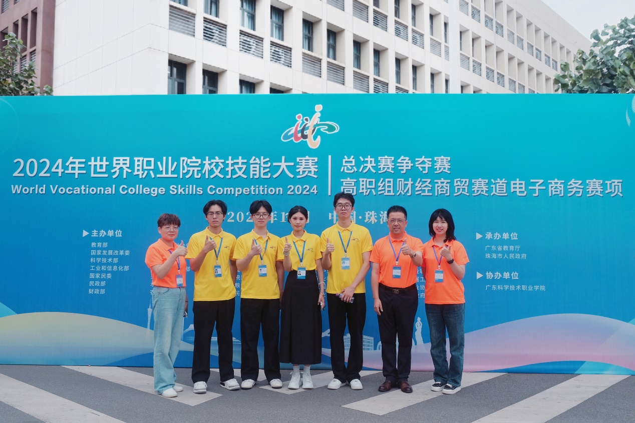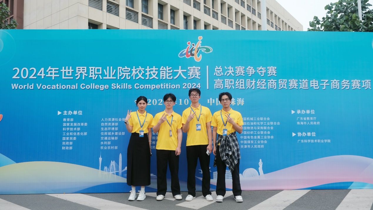 10月26日-10月28日,2024年世界職業(yè)院校技能大賽總決賽爭奪賽高職組財經(jīng)商貿(mào)賽道電子商務(wù)賽項在廣東科學(xué)技術(shù)職業(yè)學(xué)院開賽。該賽項吸引了全國高職院校63支隊伍252名選手同臺競技。我院由經(jīng)濟(jì)與管理學(xué)院院長房曰榮(領(lǐng)隊),林麗萍、方思兩位指導(dǎo)老師及胡慧武、馮晉、林祉龍、吳瓊四位同學(xué)組成的參賽團(tuán)隊參賽,并在總決賽中喜獲金獎。