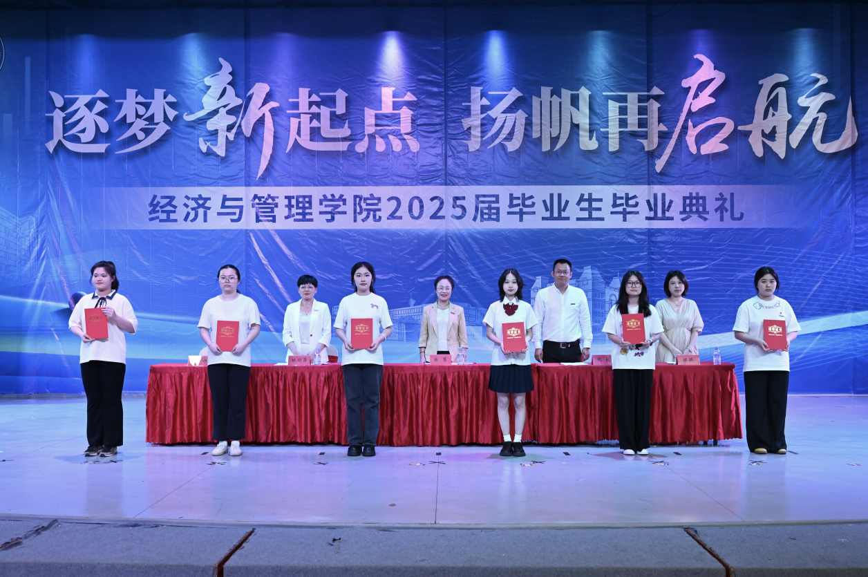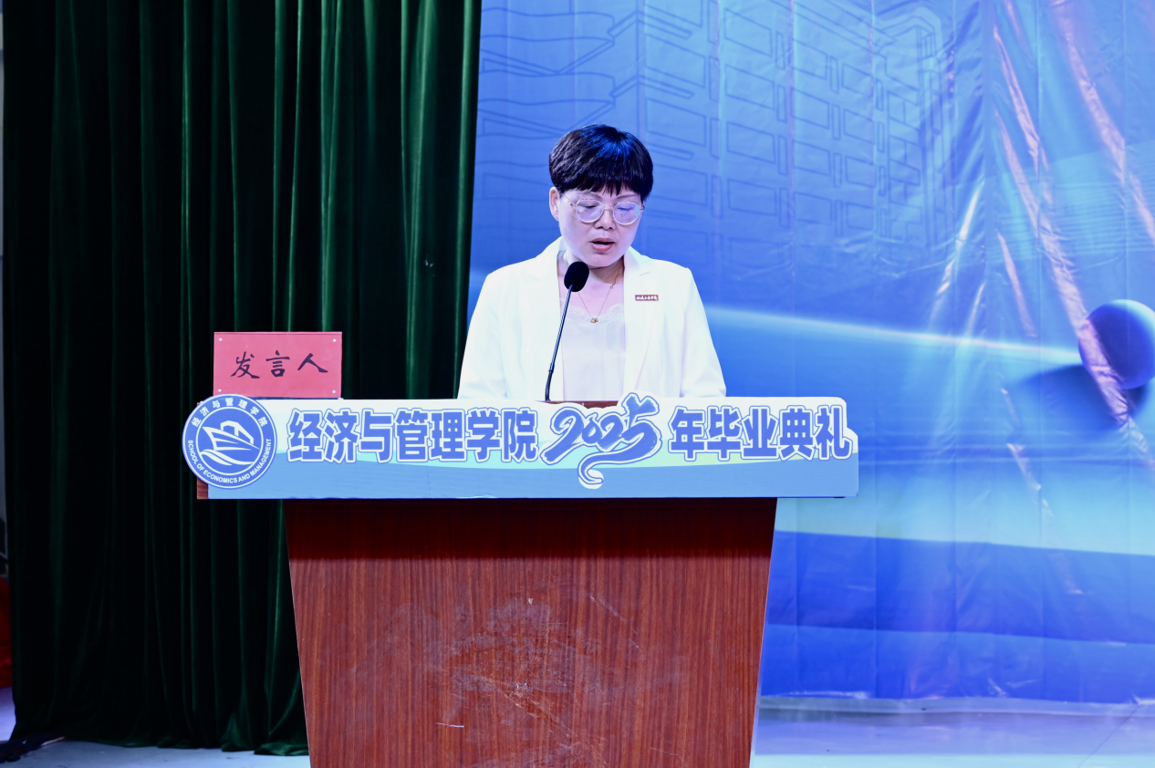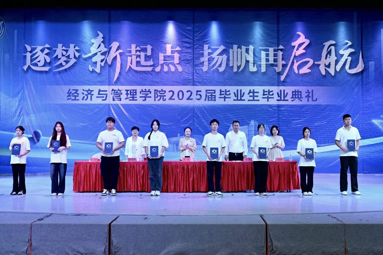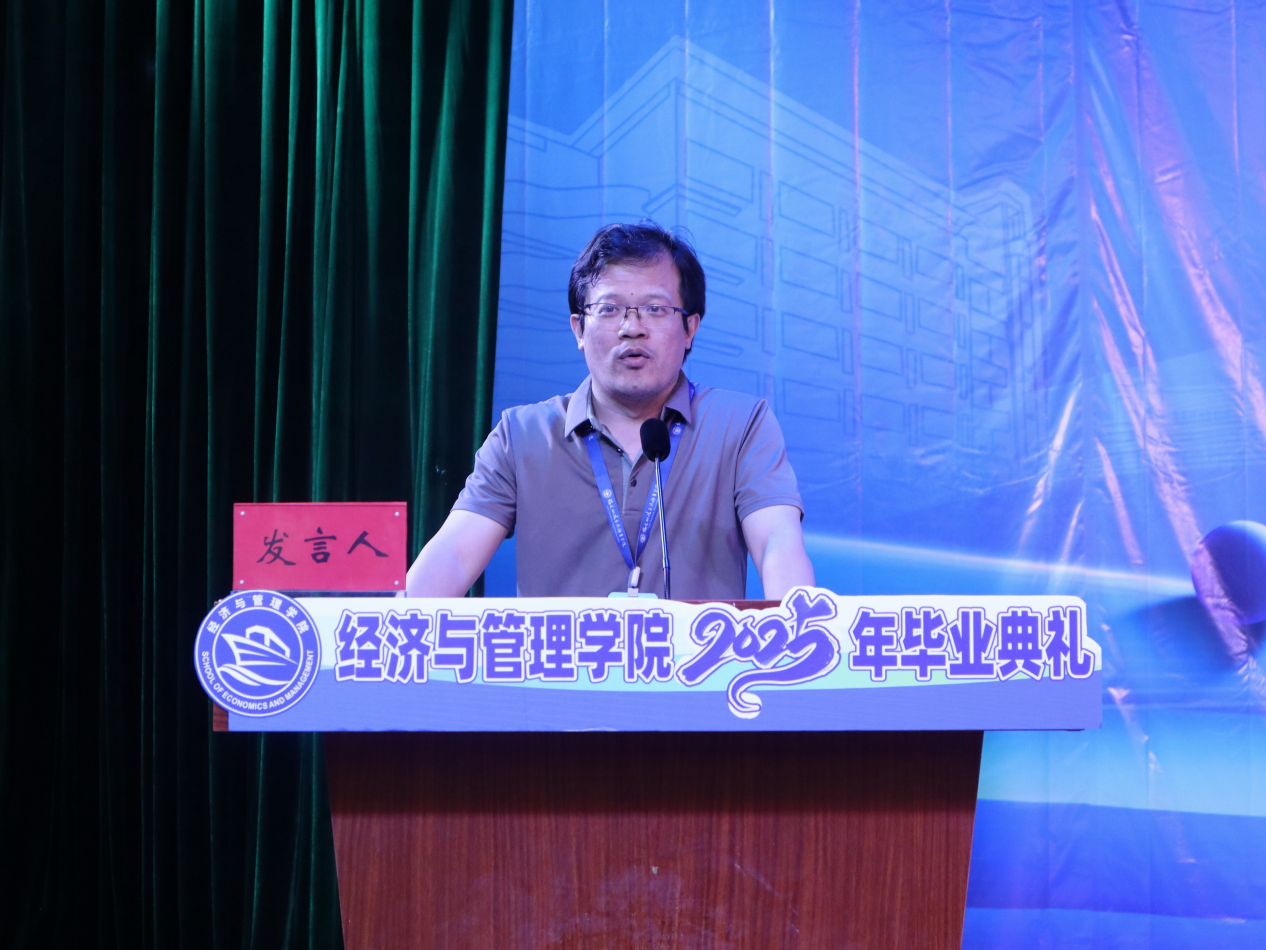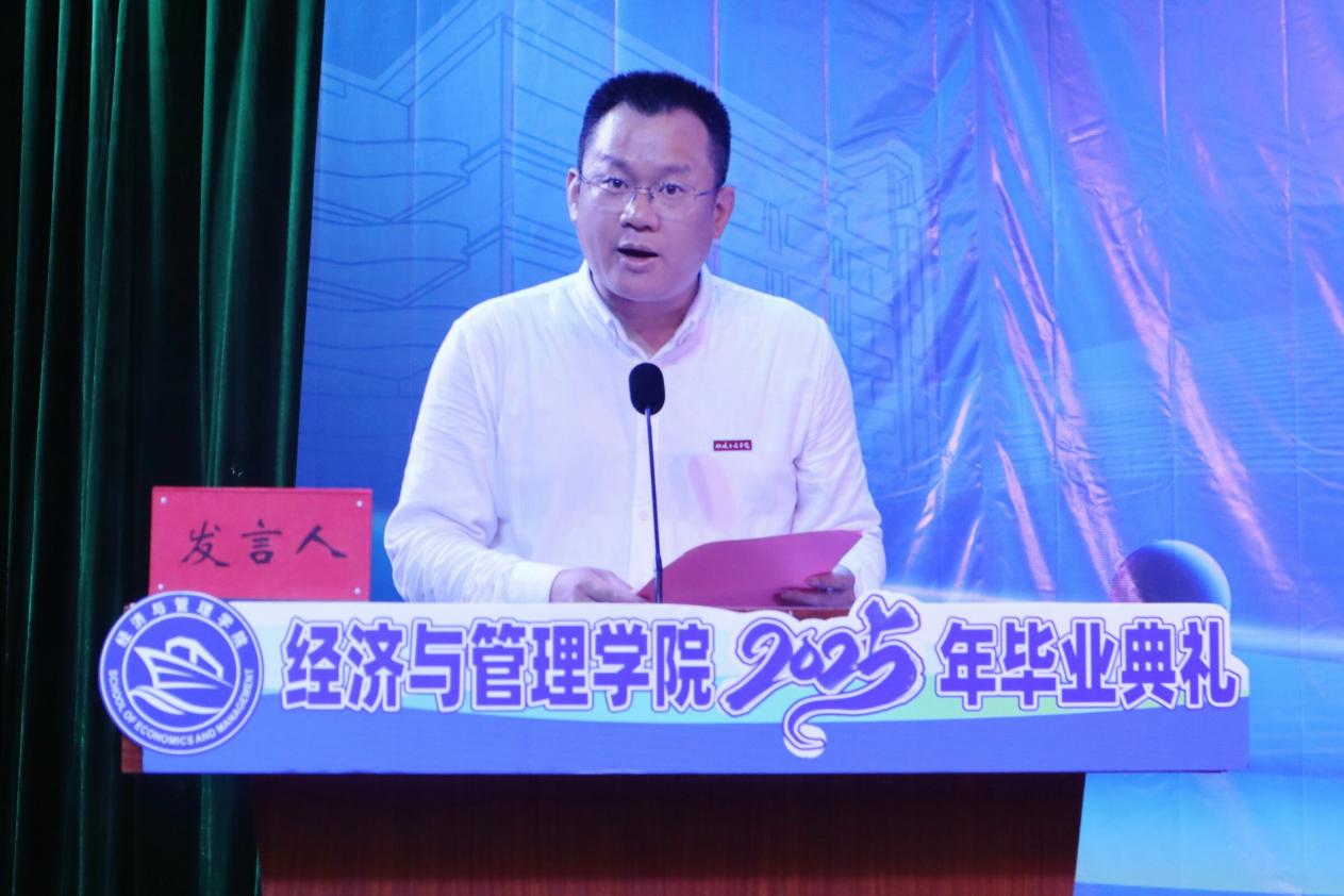 2025年5月16日下午,經(jīng)濟(jì)與管理學(xué)院 2025 屆畢業(yè)典禮在文體中心舉行。經(jīng)濟(jì)與管理學(xué)院黨政領(lǐng)導(dǎo)、各教研室主任、畢業(yè)班輔導(dǎo)員、班主任、校友代表及 2025屆全體畢業(yè)生參加典禮。典禮由學(xué)院團(tuán)委書記傅一丹主持。