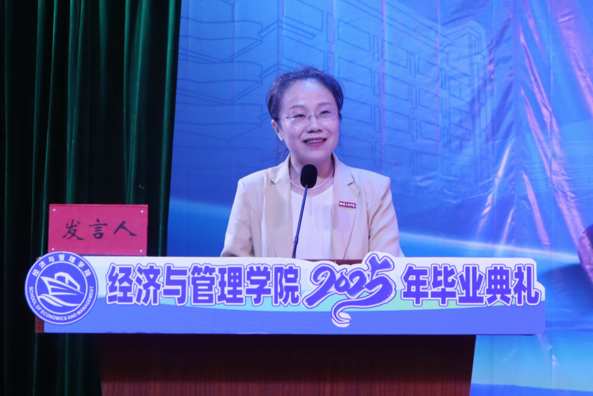 學(xué)院黨總支書記陳慧在致辭中首先向圓滿完成學(xué)業(yè)的畢業(yè)生致以熱烈祝賀,向畢業(yè)生、教師及各界人士致以誠摯的感謝和崇高的敬意。她肯定了學(xué)生的成長與進(jìn)步,感恩教師的辛勤付出。她對畢業(yè)生提出三點(diǎn)期望:一是堅定信念,將個人理想與國家發(fā)展、民族復(fù)興緊密相連;二是勤奮學(xué)習(xí),把畢業(yè)當(dāng)作終身學(xué)習(xí)的起點(diǎn),不斷提升專業(yè)素養(yǎng)和綜合能力;三是擔(dān)當(dāng)作為,堅守良知,在不同領(lǐng)域踐行責(zé)任。她表示,畢業(yè)是新征程的開端,學(xué)院永遠(yuǎn)是畢業(yè)生的堅強(qiáng)后盾,歡迎大家?;匦=涣?。最后,陳慧書記以“小舟從此逝,江海問前程;人生路漫漫,歸來仍少年”寄語,祝愿2025屆畢業(yè)生在時代浪潮中駕馭理想之舟,勇立潮頭;在人生征途上永葆赤子之心,從容前行,矢志不渝。