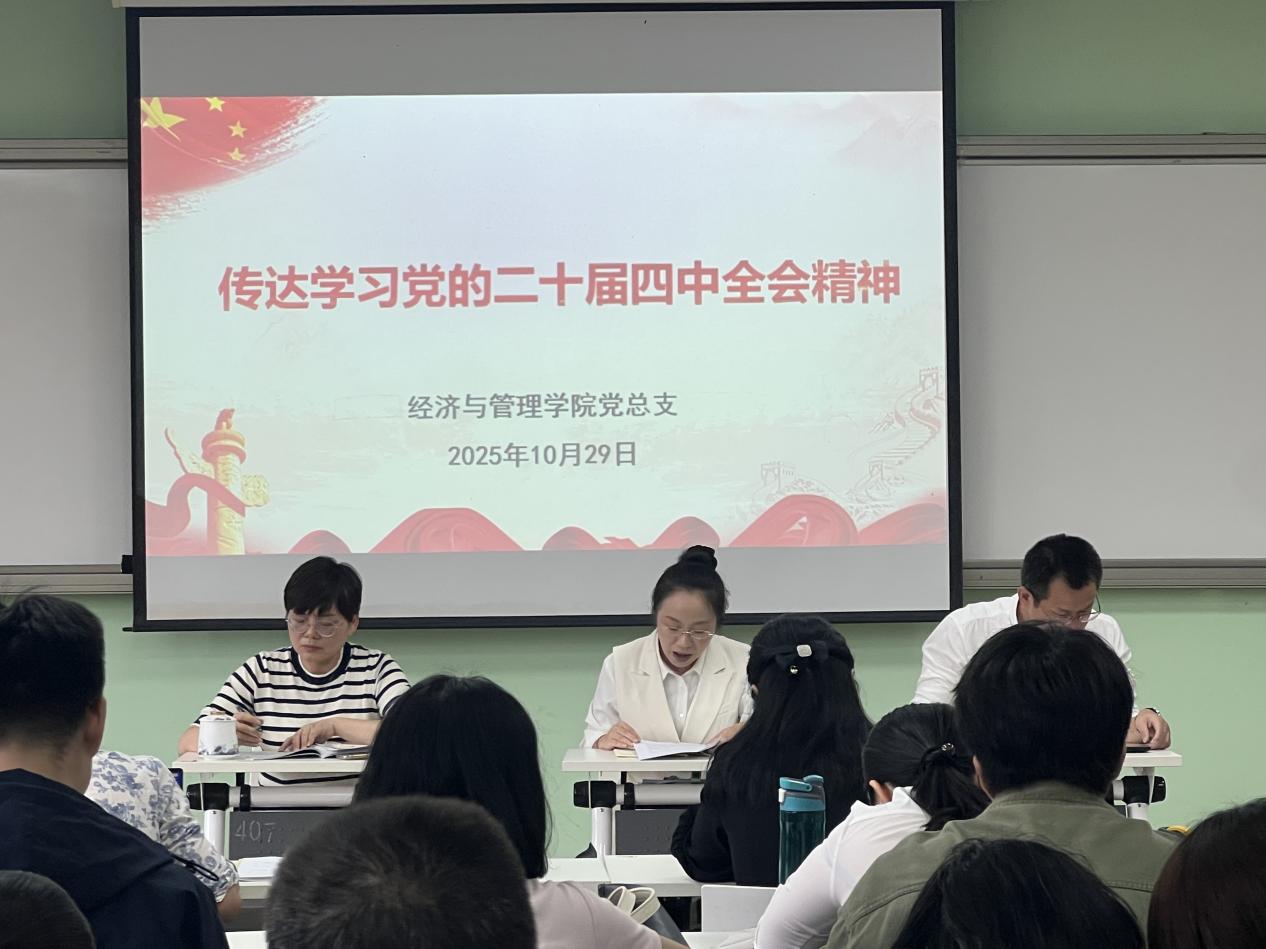 為深入學(xué)習(xí)貫徹黨的二十屆四中全會(huì)精神,切實(shí)把全院黨員干部師生的思想和行動(dòng)統(tǒng)一到全會(huì)精神上來(lái),10月29日,經(jīng)濟(jì)與管理學(xué)院召開(kāi)專(zhuān)題學(xué)習(xí)會(huì),黨總支書(shū)記陳慧主持會(huì)議并傳達(dá)全會(huì)核心要義,全體教師參加會(huì)議。