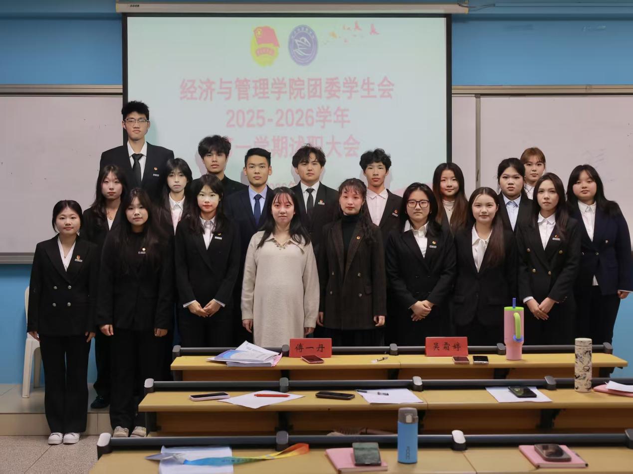 2026年1月14日,我院團委學生會2025-2026學年第一學期述職大會在經管樓308教室順利召開。學院團委書記傅一丹、副書記吳霜婷出席會議,與全體部門負責人一同回顧年度工作,共謀未來發(fā)展。