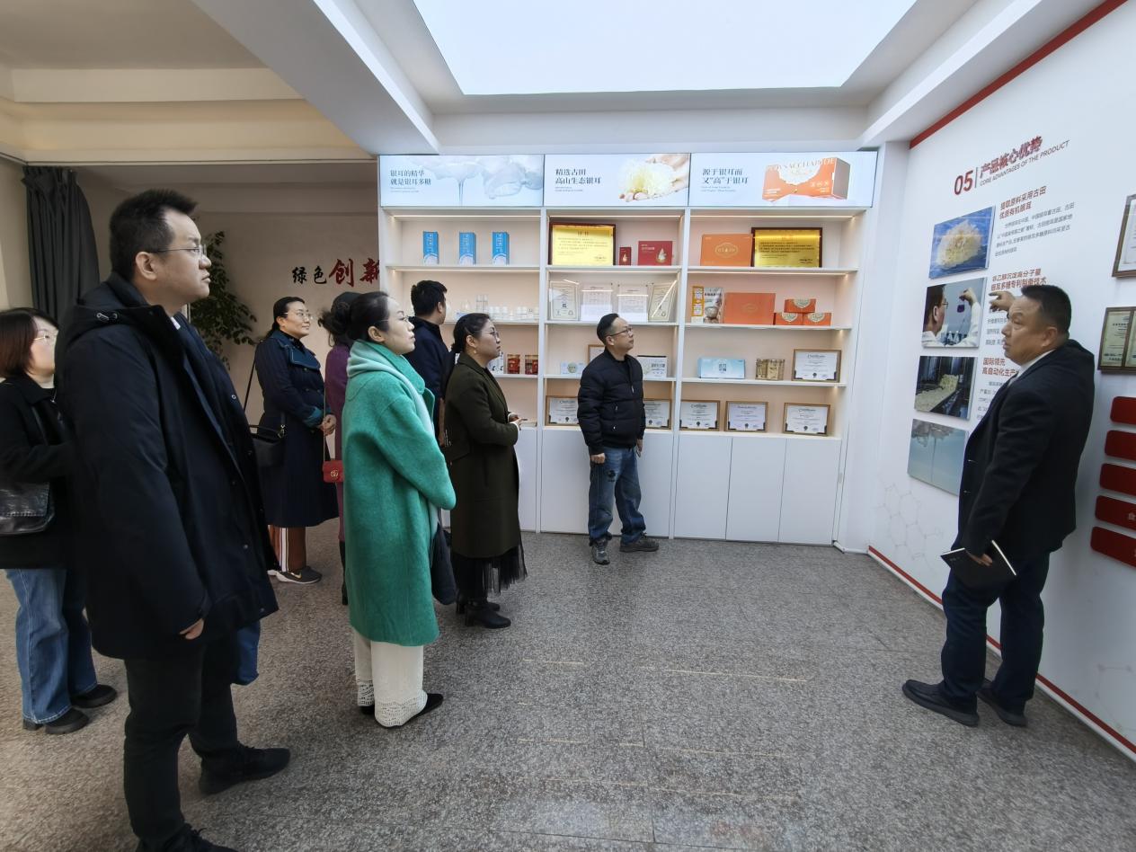 走訪期間,一行人在企業(yè)負(fù)責(zé)人陳偉的陪同下,實(shí)地參觀了公司生產(chǎn)廠房。負(fù)責(zé)人介紹,福建宏泰萊生物科技有限公司作為殼零生物旗下高新技術(shù)企業(yè)、專精特新中小企業(yè),專注于銀耳多糖功能活性物質(zhì)的研究、開發(fā)與生產(chǎn),深耕銀耳多糖相關(guān)食品、化妝品、保健品等領(lǐng)域。大家實(shí)地察看了銀耳多糖產(chǎn)品的自動(dòng)化生產(chǎn)流程、質(zhì)檢環(huán)節(jié)及倉儲(chǔ)布局,直觀了解企業(yè)生產(chǎn)運(yùn)營模式與科技創(chuàng)新實(shí)力。隨后,雙方與企業(yè)負(fù)責(zé)人及相關(guān)部門骨干開展深入座談交流。