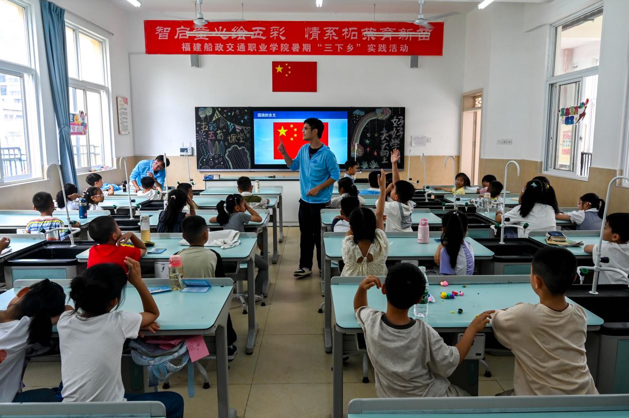 此外,“五彩五育” 愛國主義教育實踐團還走進鄉(xiāng)村校園,與柘榮縣第三小學(xué)的孩子們共赴一場愛國主義專題教育盛宴?;顒又校鸺l(fā)射模型制作、船政文化思政講堂等互動環(huán)節(jié)相映成趣,將理論宣講巧妙融入實踐操作,讓一顆顆愛國種子在孩子們純凈的心田扎根生長。這不僅引導(dǎo)他們自幼便樹立 “愛國、勵志、求真、力行” 的正確價值觀,更讓深沉熾熱的家國情懷如春雨般潛移默化,浸潤心靈深處、鐫刻精神內(nèi)核。