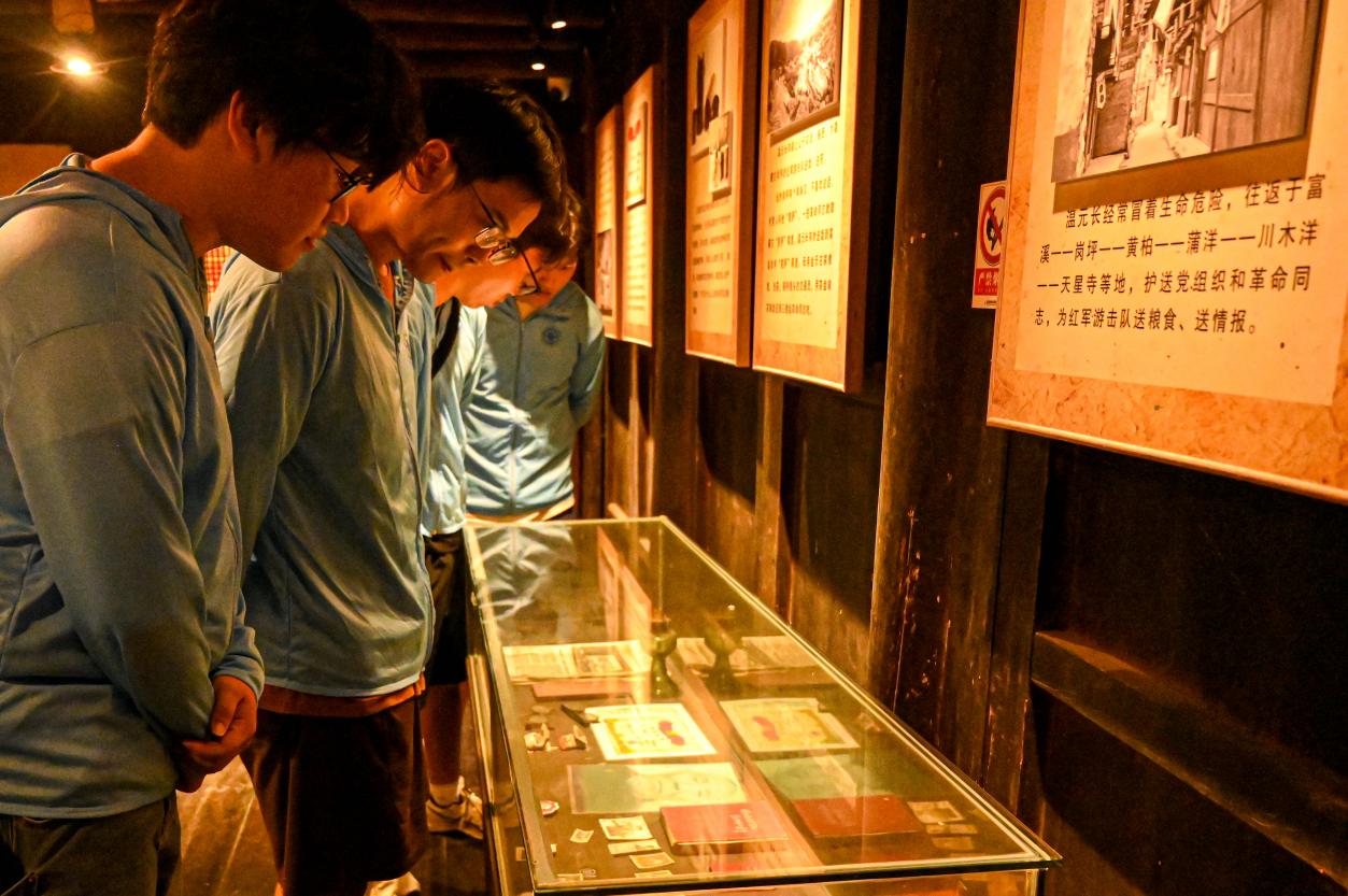 (實踐團成員參觀富溪鎮(zhèn)秘密交通站舊址)