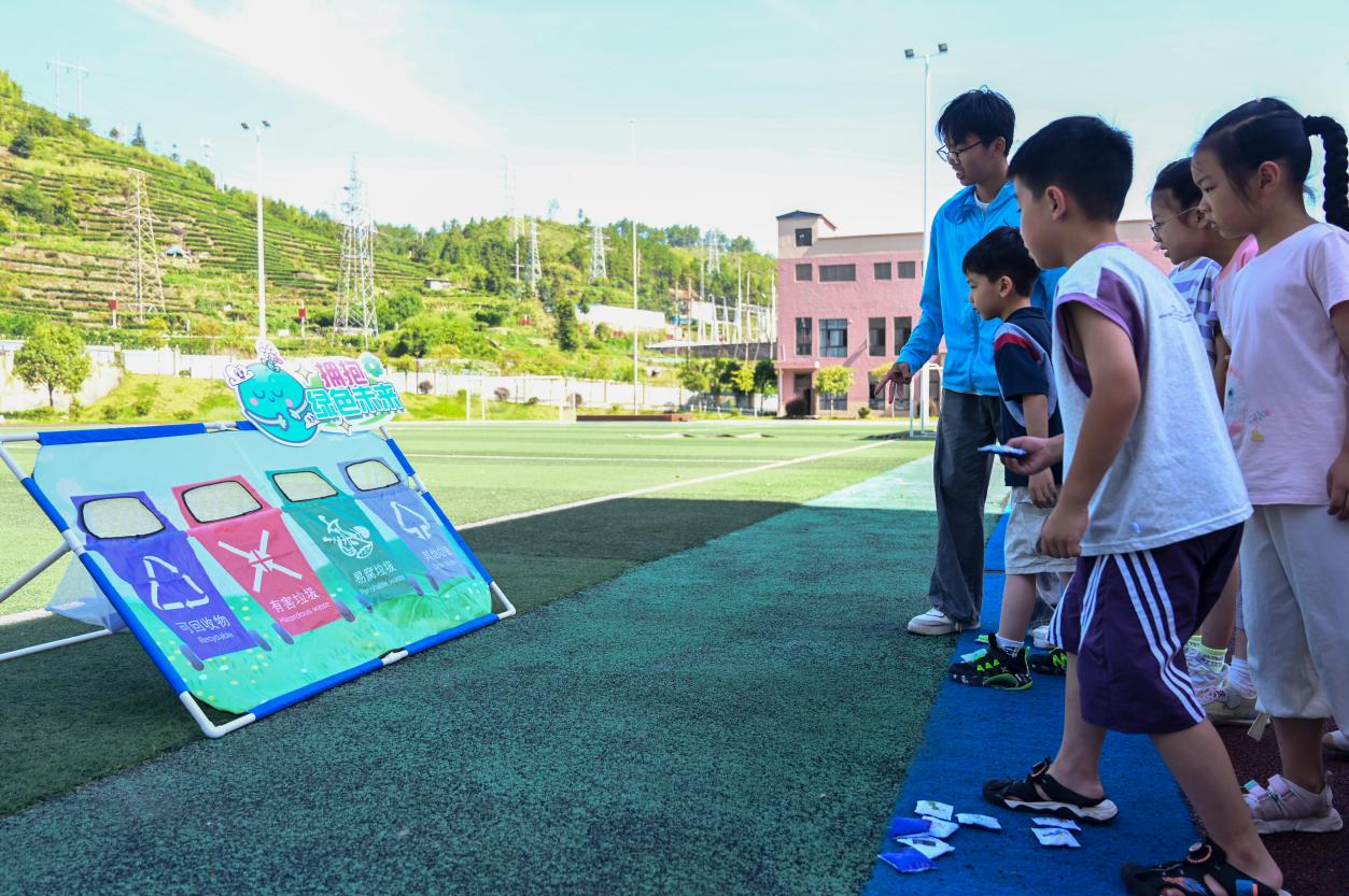 隨后,在課堂外的空地上,倡導(dǎo)團(tuán)成員們帶領(lǐng)小朋友們開展 “垃圾分類投扔賽”。成員們精心制作了“可回收物”“廚余垃圾”“有害垃圾”“其他垃圾”四個模擬垃圾桶,將寫有“廢電池”“菜葉”“塑料瓶”等字樣的沙包分發(fā)給孩子們。隨著一聲“開始”,孩子們抱著沙包飛奔到對應(yīng)的“垃圾桶”前投擲。這場趣味橫生的游戲,不僅讓孩子們在競技中牢記了分類標(biāo)準(zhǔn),更在心中悄然種下了“垃圾分類,從我做起”的責(zé)任意識。