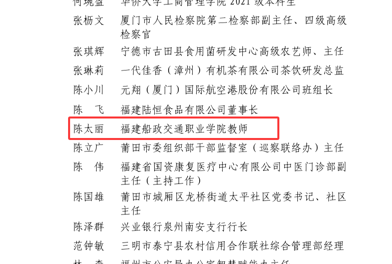 近日,共青團福建省委公示2025年度福建青年五四獎?wù)隆⒏=ㄐ聲r代青年先鋒、福建省五四紅旗團委(團支部)、福建省優(yōu)秀共青團員、福建省優(yōu)秀共青團干部表彰對象。我院教師陳太麗獲評“2025年度福建省新時代青年先鋒”榮譽稱號,特此祝賀!