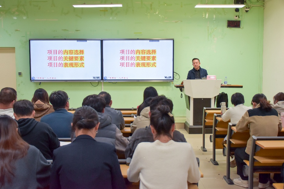袁凌教授深耕創(chuàng)新創(chuàng)業(yè)領(lǐng)域多年,兼具豐富的產(chǎn)業(yè)實(shí)踐經(jīng)驗(yàn)與賽事評(píng)審專業(yè)積淀,其授課內(nèi)容兼具理論深度與實(shí)操價(jià)值。培訓(xùn)中,袁教授緊扣大學(xué)生創(chuàng)新大賽評(píng)審規(guī)則,圍繞項(xiàng)目選題凝練、商業(yè)邏輯構(gòu)建、路演技巧優(yōu)化、團(tuán)隊(duì)協(xié)作打磨等關(guān)鍵環(huán)節(jié),結(jié)合典型案例進(jìn)行深入淺出的解析,系統(tǒng)梳理了賽事指導(dǎo)中的重點(diǎn)難點(diǎn)問題。同時(shí),針對(duì)高校創(chuàng)新創(chuàng)業(yè)教育的特點(diǎn)與需求,分享了將產(chǎn)業(yè)資源與賽事指導(dǎo)相結(jié)合的實(shí)踐路徑,為在場(chǎng)教師提供了兼具專業(yè)性與針對(duì)性的指導(dǎo)方案。