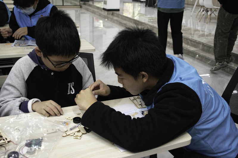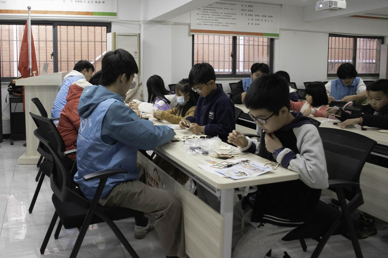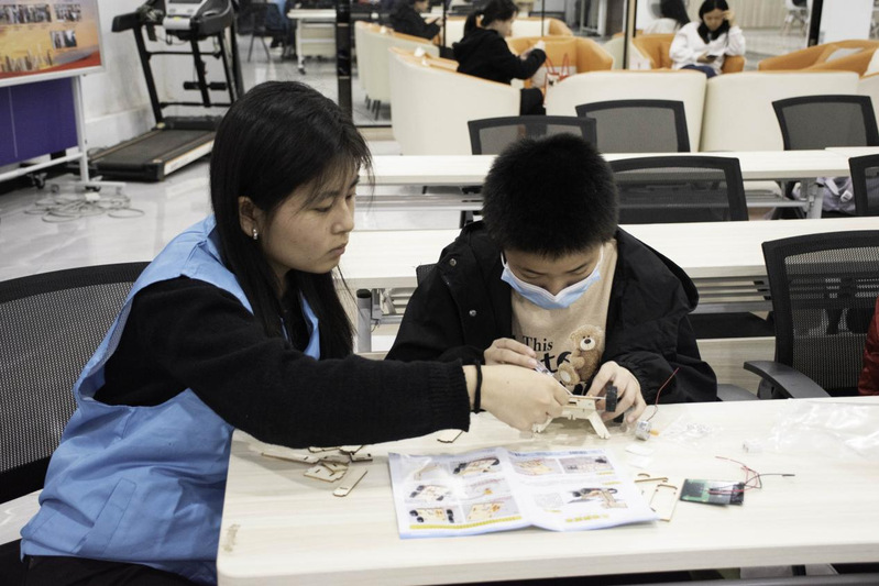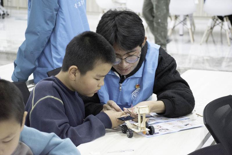 活動現(xiàn)場暖意融融、氛圍熱烈,處處洋溢著探索與創(chuàng)造的活力。志愿者們提前做好物料分發(fā)、流程梳理等準備工作,待小朋友們到場后,便以通俗易懂的語言講解月球探測車的工作原理、航天小知識,為手工制作鋪墊基礎。隨后,小朋友們化身“小小工程師”,滿懷期待地拆開月球探測車套件,在志愿者的悉心指導下,仔細辨認零件、精準組裝車輪、細心連接電路、穩(wěn)妥固定太陽能板,全神貫注完成每一個步驟。面對繁雜的組裝流程,志愿者們始終耐心陪伴,跟著小朋友的節(jié)奏逐一答疑解惑,及時糾正細節(jié)偏差,確保每一個環(huán)節(jié)都安全有序、精準無誤。
