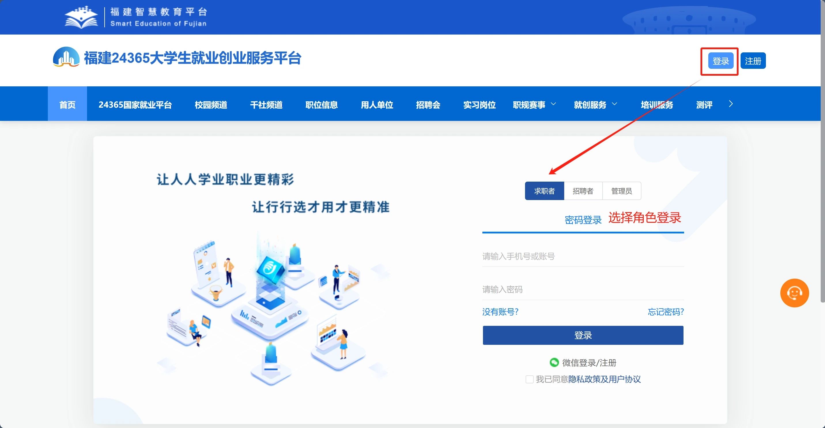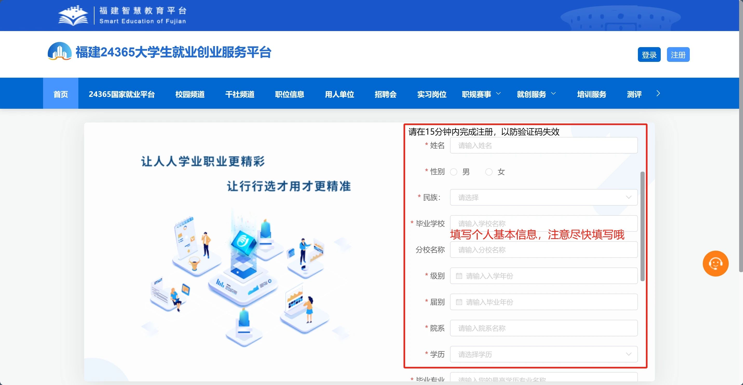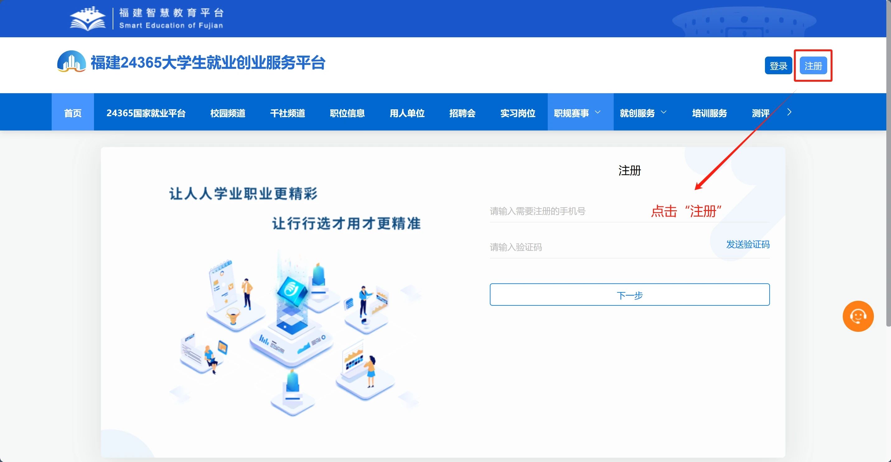 根據(jù)福建省2024屆普通高校畢業(yè)生就業(yè)創(chuàng)業(yè)工作推進(jìn)會(huì)會(huì)議精神,為給畢業(yè)生提供更多更高質(zhì)量就業(yè)崗位,優(yōu)化就業(yè)指導(dǎo)服務(wù),現(xiàn)進(jìn)一步推廣福建24365大學(xué)生就業(yè)創(chuàng)業(yè)服務(wù)平臺(tái),注冊(cè)流程說(shuō)明如下,請(qǐng)2024屆畢業(yè)生按照流程進(jìn)行注冊(cè)。