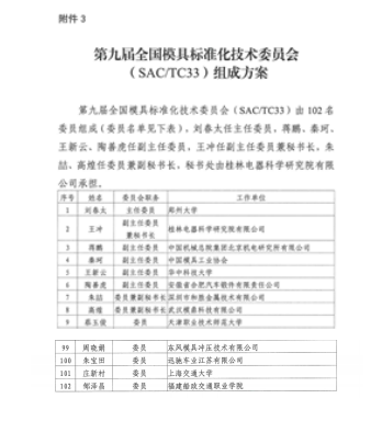 8月30日,國家標(biāo)準化管理委員會公告(2023年第9號)批準了全國模具標(biāo)準化技術(shù)委員會換屆。我院鄒澤昌老師入選第九屆全國模具標(biāo)準化技術(shù)委員會(SAC/TC33)委員。全國模具標(biāo)準化技術(shù)委員會是國家標(biāo)準化管理委員會直屬的全國性標(biāo)準化技術(shù)組織,成立于1983年,主要負責(zé)模具領(lǐng)域國家標(biāo)準和行業(yè)標(biāo)準的制修訂工作。