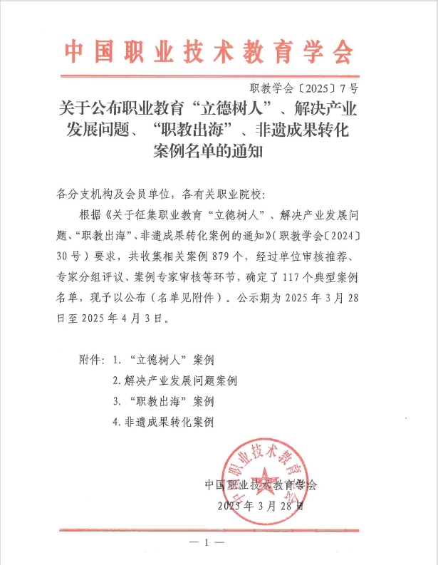 此次案例入選,彰顯了學院“雙高”建設在立德樹人與文化傳承創(chuàng)新領域的成果。未來,學院將繼續(xù)以“雙高計劃”為引領,深化現(xiàn)代職業(yè)教育體系建設改革,為區(qū)域經(jīng)濟發(fā)展和產(chǎn)業(yè)轉(zhuǎn)型升級提供更有力的支撐。