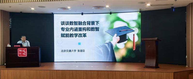 為深入貫徹落實(shí)國家教育數(shù)字化戰(zhàn)略行動,探索數(shù)智融合背景下專業(yè)發(fā)展新路徑,5月26日上午,學(xué)院成功舉辦 “談?wù)剶?shù)智融合背景下專業(yè)內(nèi)涵重構(gòu)和數(shù)智賦能教學(xué)改革”專題講座。本次講座邀請到 北京交通大學(xué)原副校長張星臣擔(dān)任主講嘉賓,學(xué)院領(lǐng)導(dǎo)、各二級學(xué)院領(lǐng)導(dǎo)、專業(yè)帶頭人、新進(jìn)教師等近100人參加了本次講座。