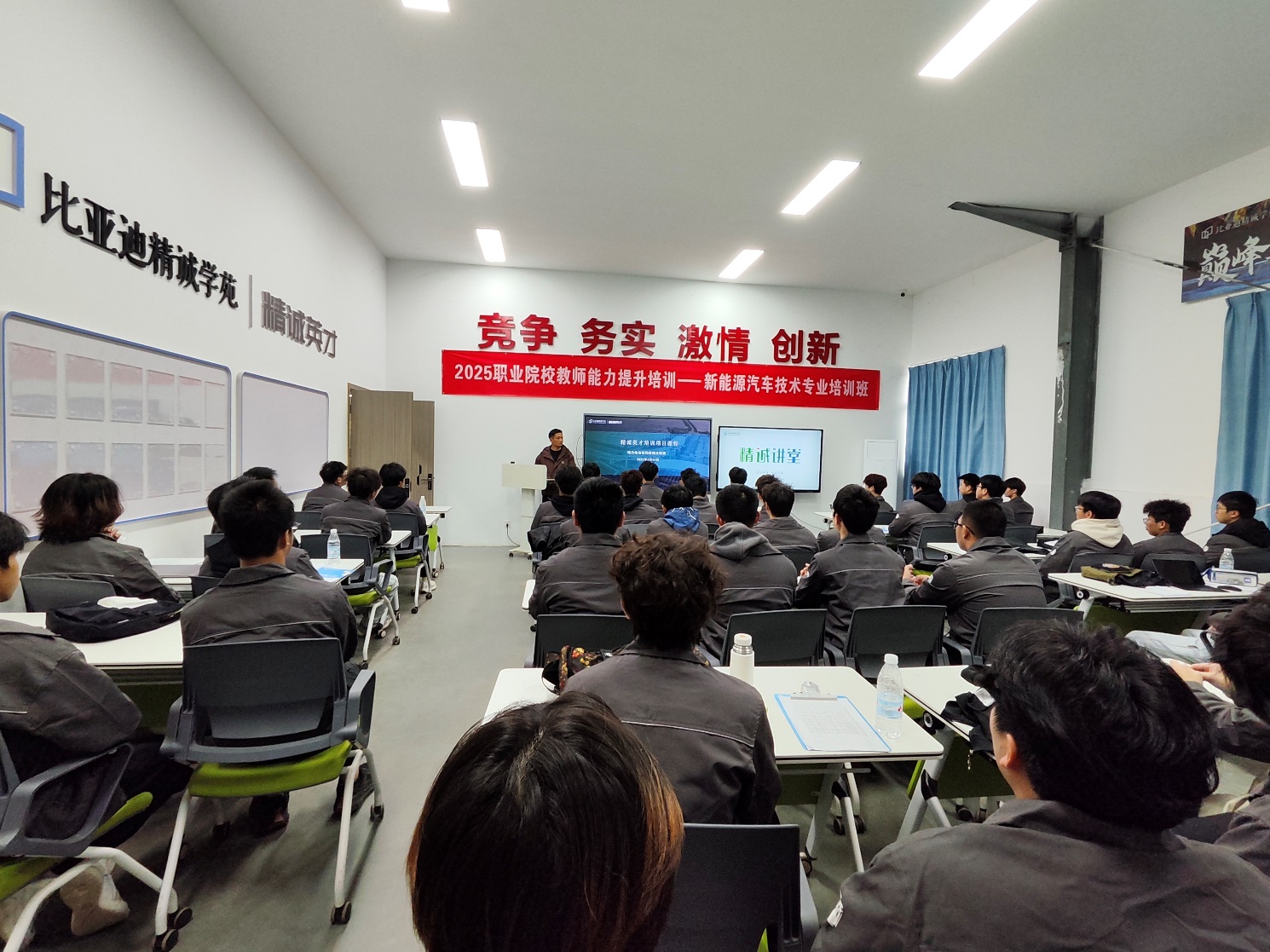 2025年3月26日下午14:00,比亞迪精誠學(xué)苑"企業(yè)工匠進(jìn)校園"系列講座在中區(qū)比亞迪汽車實(shí)訓(xùn)基地教室舉行。本次以"動(dòng)力電池結(jié)構(gòu)原理及檢測"為主題的講座,不僅是一次專業(yè)知識(shí)的傳授,更是一場工匠精神的傳承盛會(huì),23級(jí)新能源汽車技術(shù)2班(比亞迪精誠英才班)全體學(xué)生參加了此次活動(dòng)。主講人賴昌斌工程師作為比亞迪技術(shù)巡檢專家,15年來始終堅(jiān)守在汽車行業(yè)一線,以其精益求精的工匠態(tài)度,成為福建省比亞迪全品牌技術(shù)支持的骨干力量。講座中,他以"工匠育人"為理念,通過生動(dòng)詳實(shí)的案例,深入剖析了動(dòng)力電池的核心技術(shù),特別強(qiáng)調(diào)了在檢測環(huán)節(jié)中"毫厘不差"的專業(yè)標(biāo)準(zhǔn)。