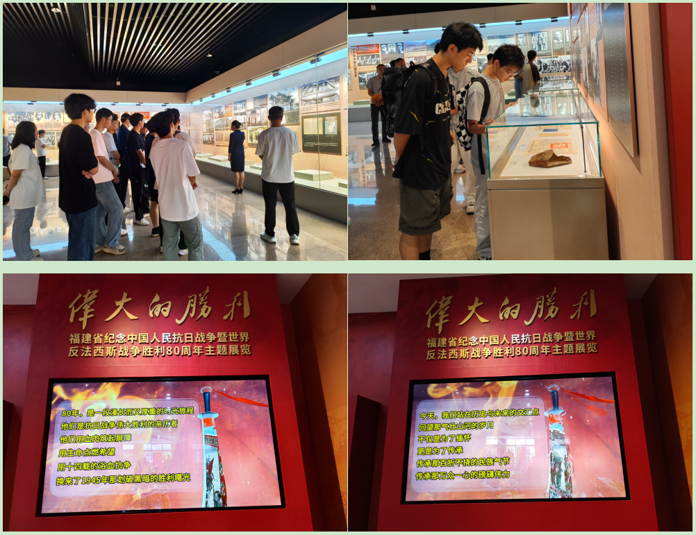 2025年9月28日9時,汽車學(xué)院黨總支組織師生黨員、積極分子及學(xué)生代表共50人,前往福建省革命歷史紀(jì)念館,參觀由省委宣傳部主辦的“偉大的勝利——福建省紀(jì)念中國人民抗日戰(zhàn)爭暨世界反法西斯戰(zhàn)爭勝利80周年主題展”,通過沉浸式學(xué)習(xí)重溫抗戰(zhàn)歷史,厚植家國情懷。