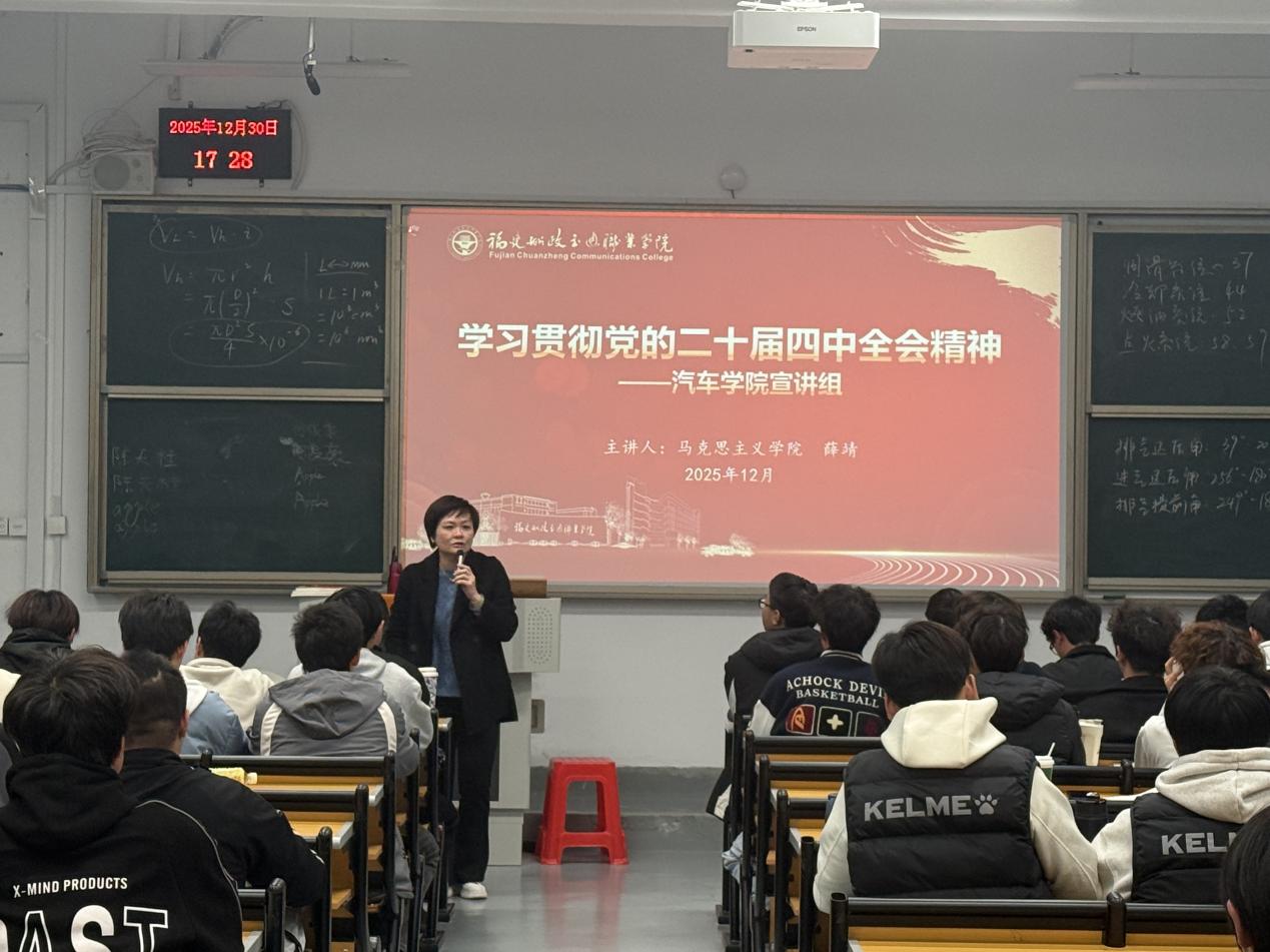此次專(zhuān)題宣講是汽車(chē)學(xué)院深化“大思政課”育人格局的重要舉措,不僅推動(dòng)了黨的二十屆四中全會(huì)精神在我院的貫徹落實(shí),更搭建起理論武裝與思想引領(lǐng)的堅(jiān)實(shí)平臺(tái)。我院將以此次宣講為契機(jī),持續(xù)推動(dòng)全會(huì)精神學(xué)習(xí)走深走實(shí),引導(dǎo)青年學(xué)子以全會(huì)精神為根本遵循,胸懷“國(guó)之大者”,勇?lián)鷷r(shí)代使命,主動(dòng)將個(gè)人理想追求融入國(guó)家發(fā)展大局與民族復(fù)興偉業(yè),切實(shí)把學(xué)習(xí)成效轉(zhuǎn)化為立足專(zhuān)業(yè)深耕細(xì)研、投身實(shí)踐服務(wù)社會(huì)的實(shí)際行動(dòng),在推進(jìn)中國(guó)式現(xiàn)代化建設(shè)的新征程中書(shū)寫(xiě)無(wú)愧于時(shí)代、無(wú)愧于青春的奮斗答卷。
