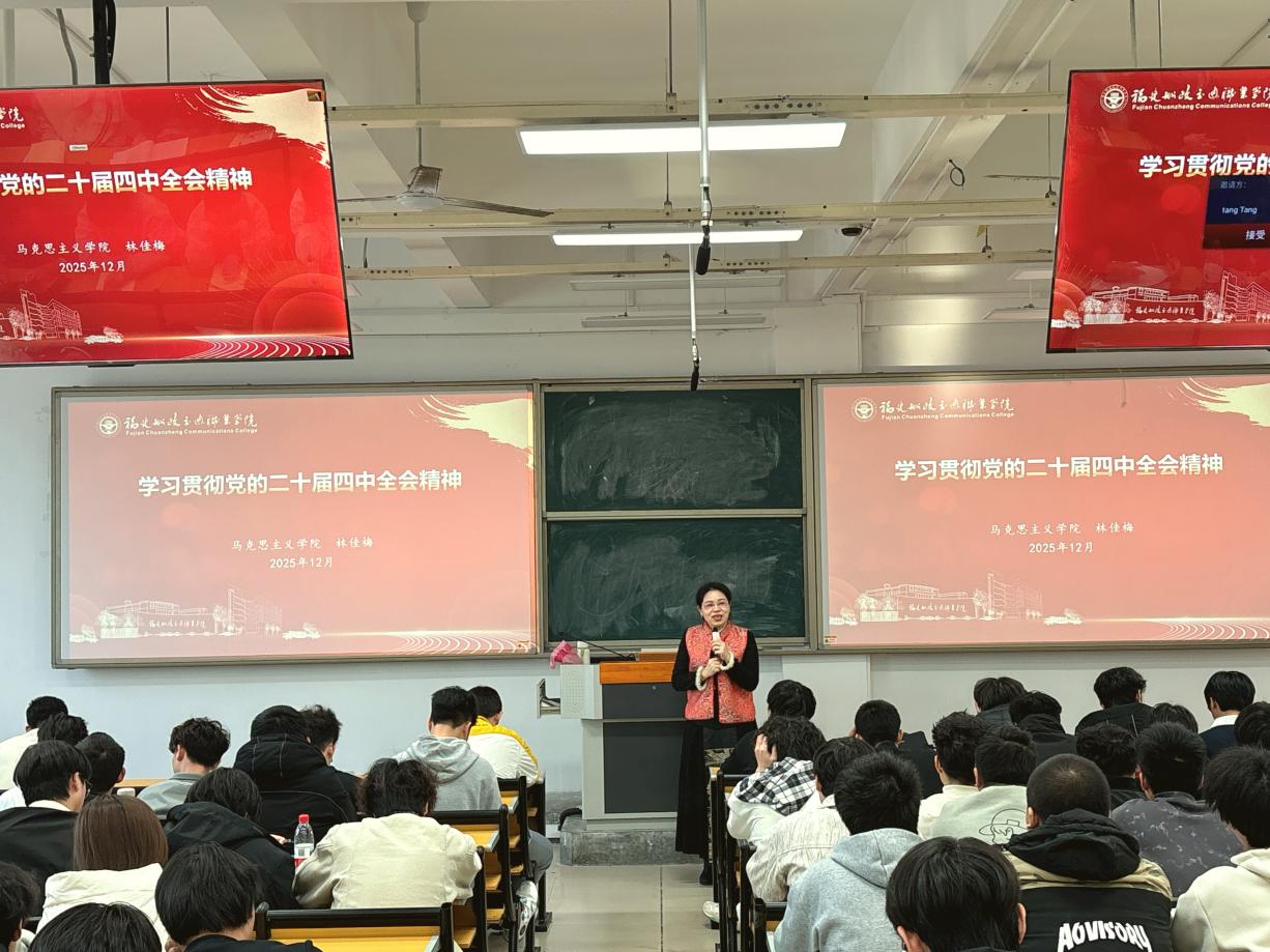 為深入學(xué)習(xí)貫徹黨的二十屆四中全會(huì)精神,推動(dòng)全會(huì)精神在我院青年學(xué)子中入腦入心、落地生根。12月30日,我院邀請(qǐng)馬克思主義學(xué)院薛靖、林佳梅、陳藝、黃晉京四位教師,分場(chǎng)次開(kāi)展黨的二十屆四中全會(huì)精神專(zhuān)題宣講會(huì)。