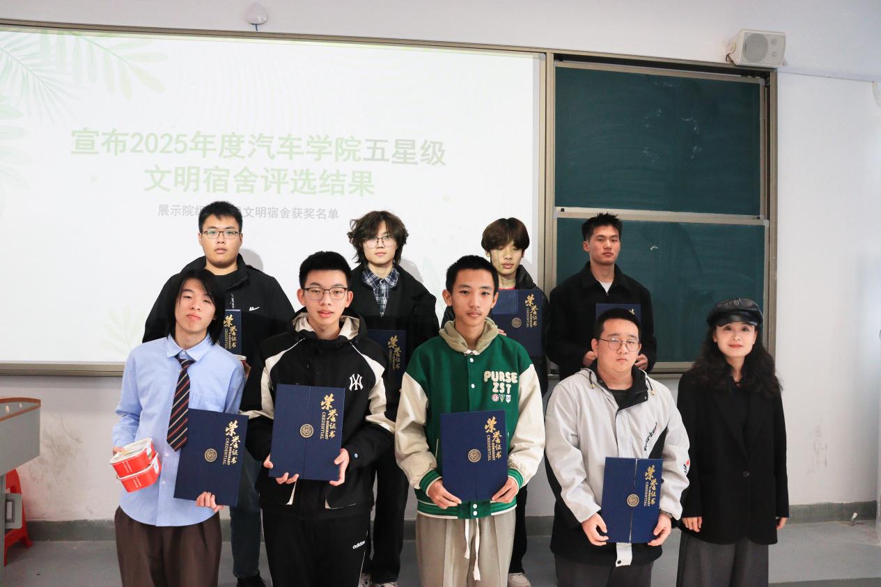 此次表彰大會(huì)不僅樹立了文明標(biāo)桿,更凝聚了建設(shè)和諧校園的共識(shí)。汽車學(xué)院將以此次大會(huì)為契機(jī),讓榜樣力量輻射全院,推動(dòng)更多宿舍成為文明養(yǎng)成的窗口、學(xué)業(yè)進(jìn)步的平臺(tái)、情誼凝聚的家園。未來進(jìn)一步深化“五育融合”理念,完善宿舍建設(shè)長效機(jī)制,持續(xù)開展多樣化的特色活動(dòng),推動(dòng)思政教育下沉一線,讓宿舍成為全員參與、全員育人的鮮活課堂,助力汽車學(xué)子們在優(yōu)良環(huán)境中全面發(fā)展。