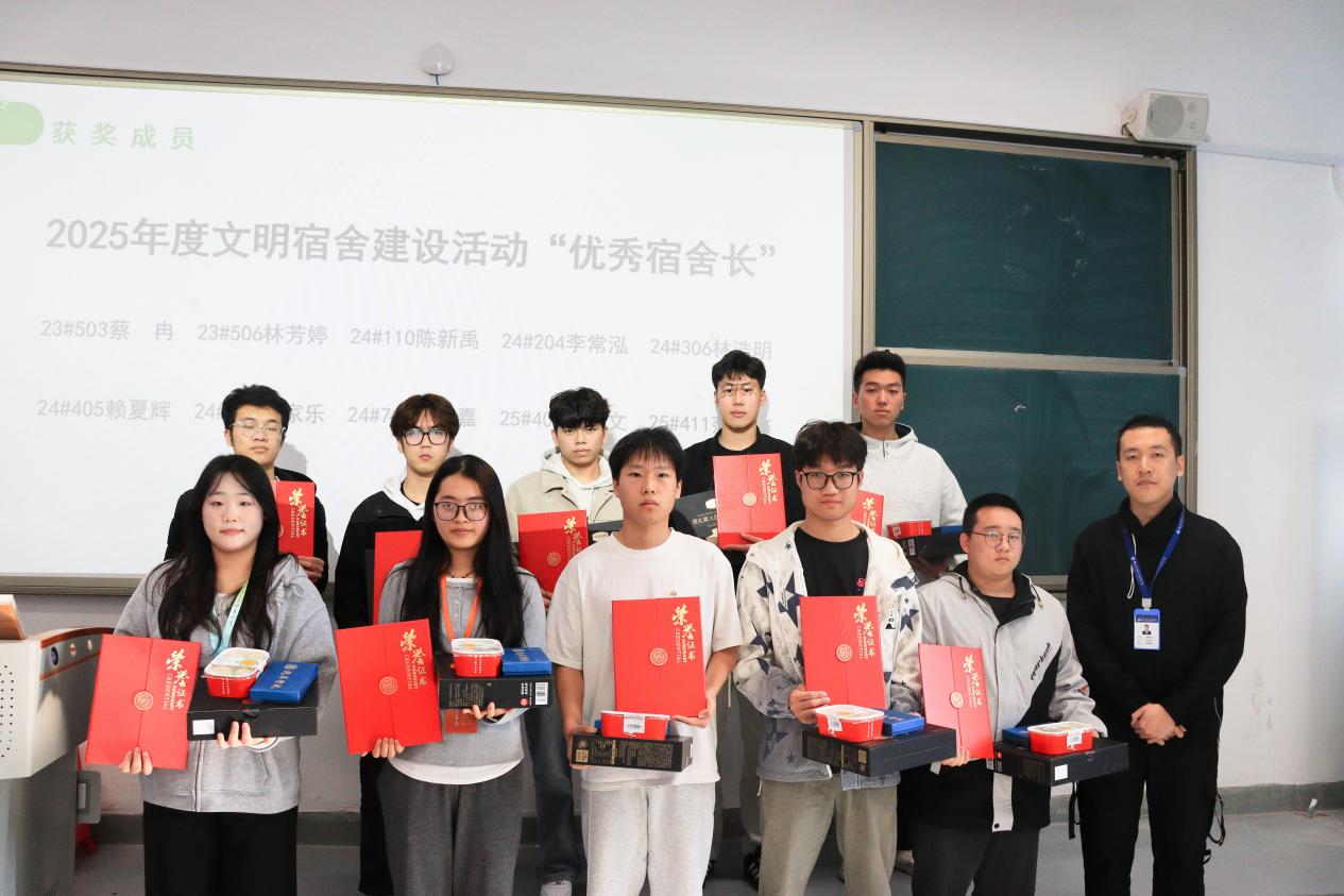 頒獎(jiǎng)環(huán)節(jié)中,輔導(dǎo)員們陸續(xù)上臺(tái)為2025年度文明宿舍建設(shè)先進(jìn)集體與先進(jìn)個(gè)人逐一頒發(fā)榮譽(yù)證書與實(shí)用獎(jiǎng)品,這既是對過往努力的肯定,更承載著對學(xué)子們營造優(yōu)質(zhì)宿舍生活的期許。值得一提的是,除表彰先進(jìn)集體外,今年活動(dòng)中首次加入了先進(jìn)個(gè)人的表彰環(huán)節(jié),并細(xì)化為“優(yōu)秀宿舍長”“突出貢獻(xiàn)獎(jiǎng)”“最佳組織獎(jiǎng)”等多個(gè)層級(jí),其中“優(yōu)秀宿舍長”用于表彰在本年度安全衛(wèi)生檢查中表現(xiàn)優(yōu)異的同學(xué);“突出貢獻(xiàn)獎(jiǎng)”用于表彰在宿舍文化活動(dòng)和維護(hù)宿舍公共區(qū)域環(huán)境中貢獻(xiàn)突出的同學(xué);“最佳組織獎(jiǎng)”用于表彰在文明宿舍建設(shè)評(píng)比活動(dòng)中領(lǐng)導(dǎo)有方、實(shí)施有力的學(xué)生干部,形成梯度獎(jiǎng)勵(lì)機(jī)制,實(shí)現(xiàn)了文明宿舍建設(shè)全過程的有效閉環(huán)。